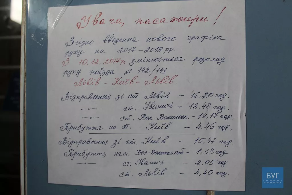 З 10-го грудня швидкий фірмовий потяг зі сполученням Львів-Київ-Львів змінив свій розклад руху і відправляється зі станції “Іваничі” до Києва о 18:48. До цього часу він вирушав із станції о 00:20.