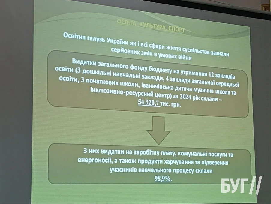 За її словами, левова частина коштів місцевої казни пішла просто на утримання комунальних установ, які перебували у районній комунальній власності колишнього Іваничівського району. Зокрема, ліцеїв і дитсадка, лікарні та Центру ПМСД, дитячої музичної школи, інклюзивно-ресурсного центру і дитячо-юнацької спортивної школи, а також закладів культури. Йдеться про виплату зарплати та оплату комунальних послуг.