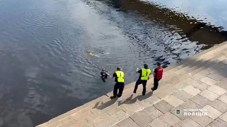 Тіло потопельника виявили на глибині ріки в районі Пішохідного мосту. Його підняли на суходіл.
