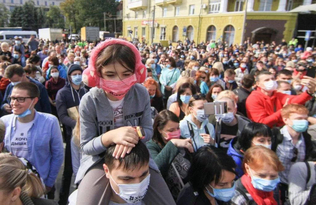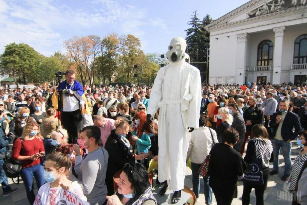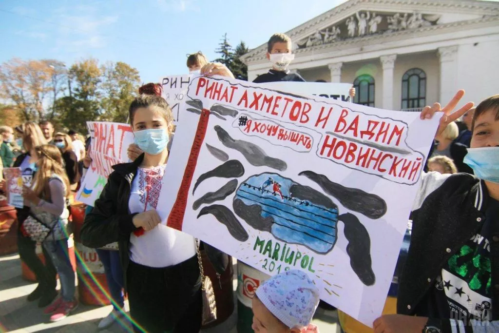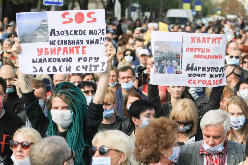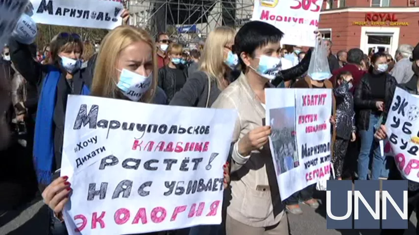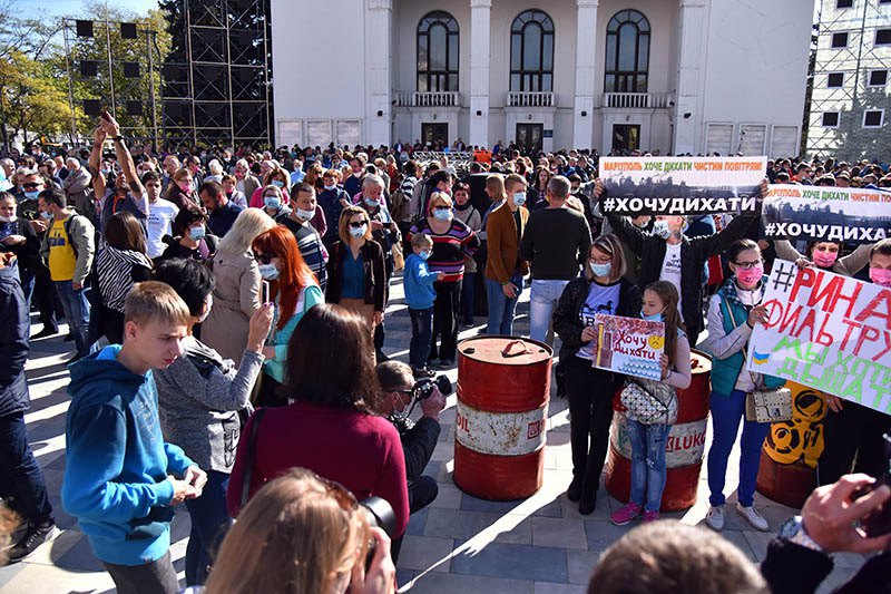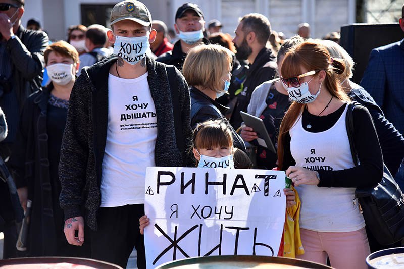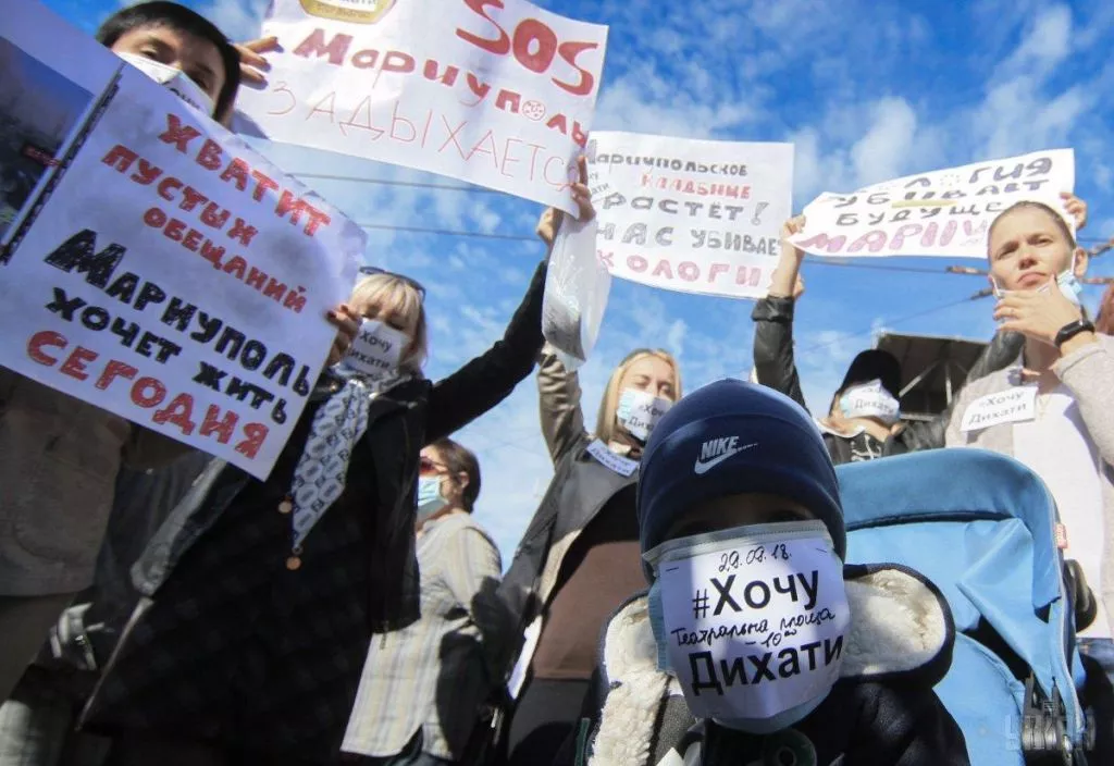 29-го вересня, в День міста, жителі Маріуполя Донецької області провели екологічний мітинг. Люди у масках та респіраторах вимагали встановити фільтри та лічильники на трубах Металургійного комбінату, який належить Рінату Ахметову.