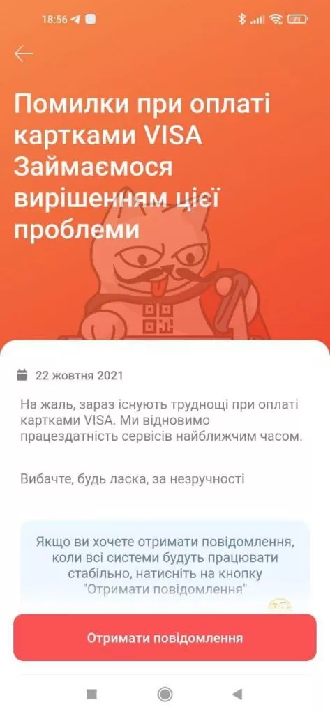 Платіжна система видає помилку як при спробі здійснити транзакцію онлайн-платежем, так і при спробі оплатити покупку в магазині за допомогою картки.