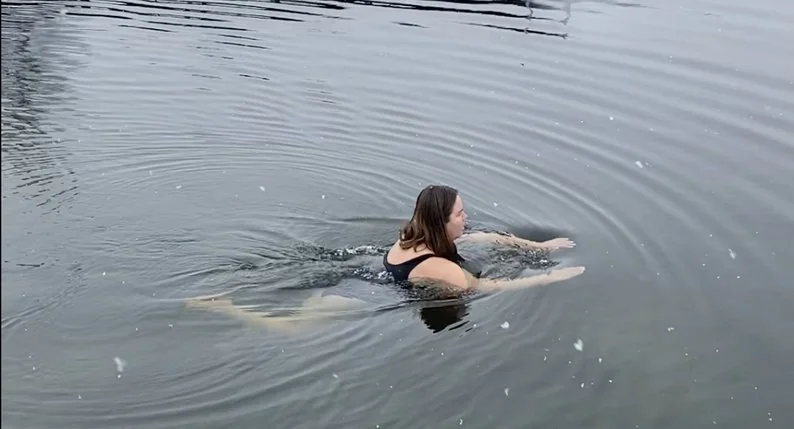 “Почала купатися в січні, купалася поступово. Я собі зразу пішла в ополонку окунатися, бо мені було так комфортно. Я відчувала, що мені так добре”, — каже Катерина.
