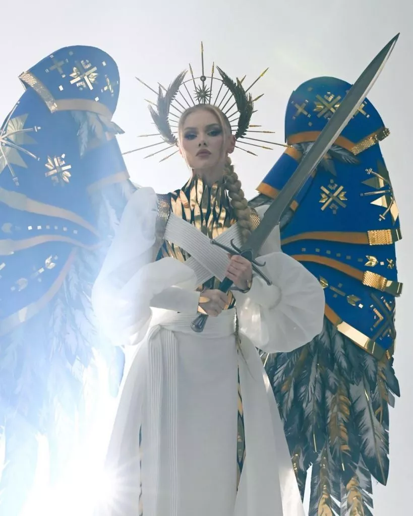Нагадаємо, що крила були частиною костюма під назвою “Воїн світла”. У ньому Вікторія вийшла на сцену конкурсу краси Міс Всесвіт 2022, чим і вразила публіку.