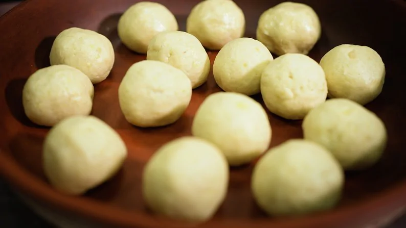 Тісто до волохаників готують із картопляного пюре та сирої тертої картоплі.