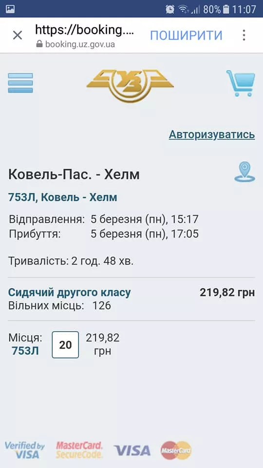 Квитки на поїзд Ковель – Хелм можна купити онлайн
