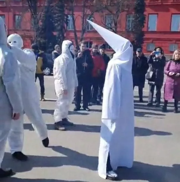 Києвом пройшла хода Covid-скептиків у костюмах Ку-клукс-клану