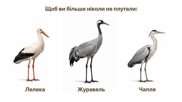 Лелека, журавель чи чапля: як не переплутати найвідоміших птахів України