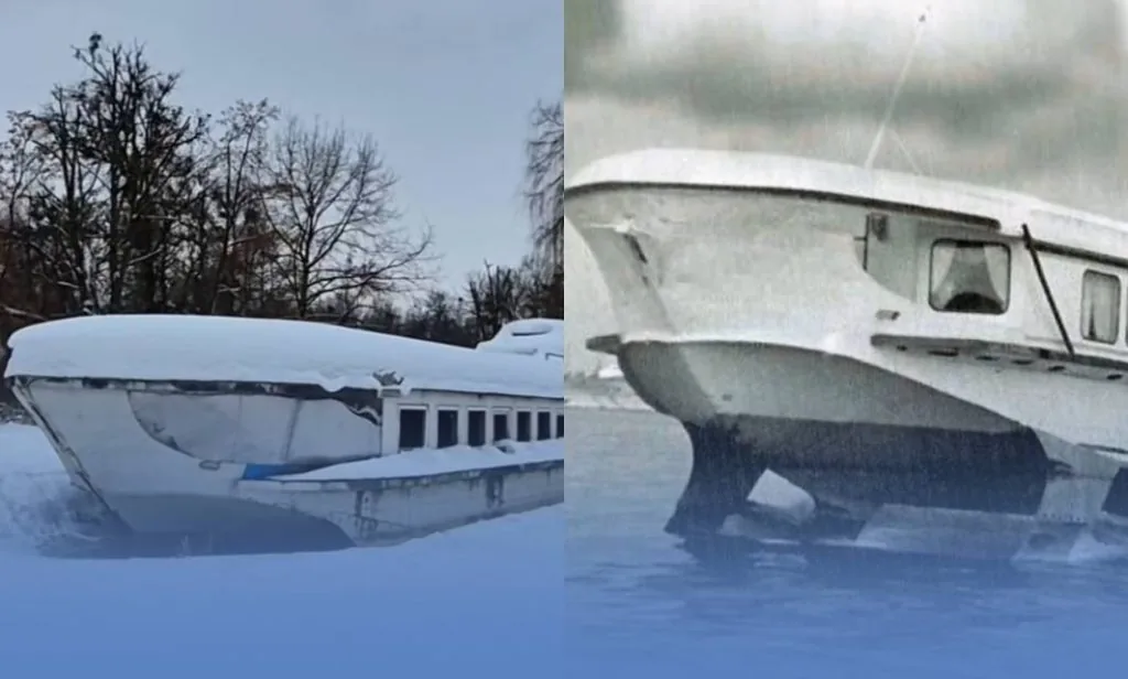 Завдяки зимовій кризі на каналі до судна можна підійти з боку води та роздивитися його зблизька. Колись ця «Ракета» курсувала Дніпром та Південним Бугом. Такі теплоходи випускали з 1960-х до 1980-х років, після чого їх поступово замінили сучасніші моделі.