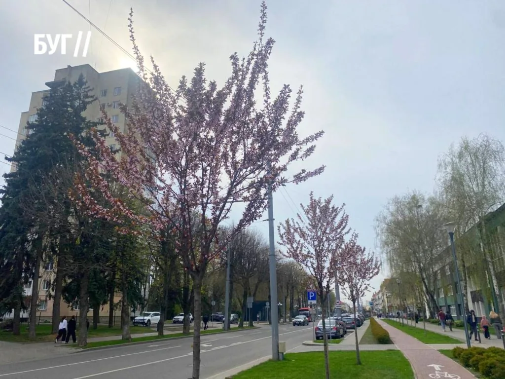 У Луцьку почався сезон цвітіння сакур. Зокрема, на проспекті Волі дерева вже вкрилися рожевими квітами.