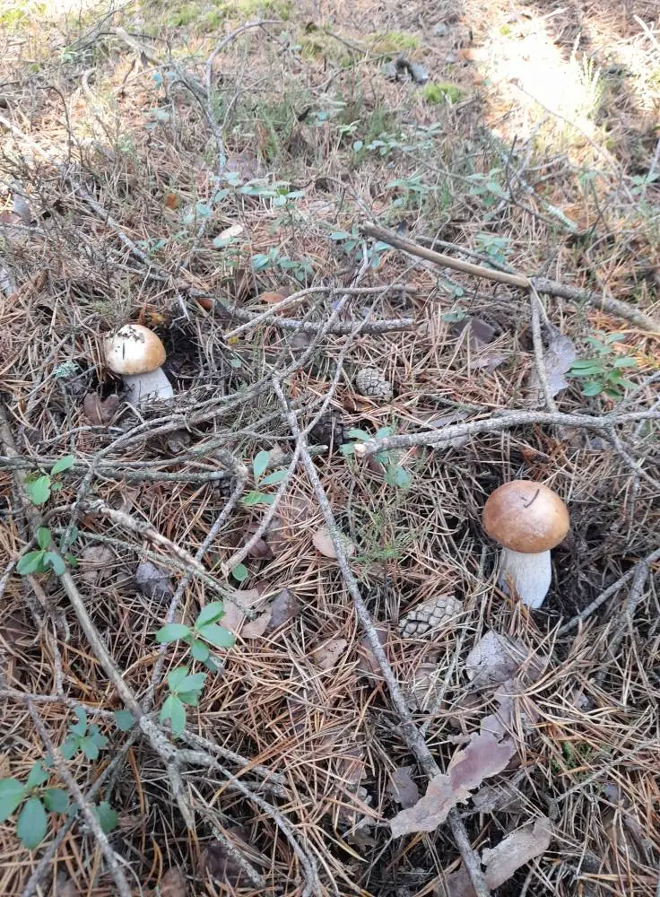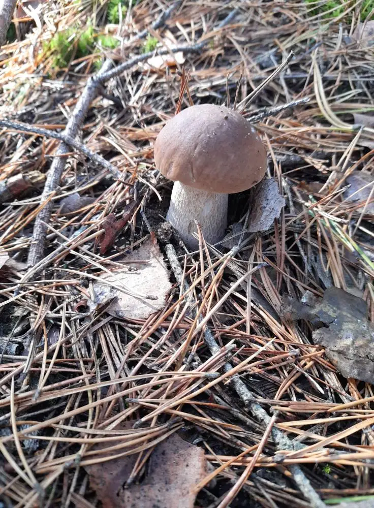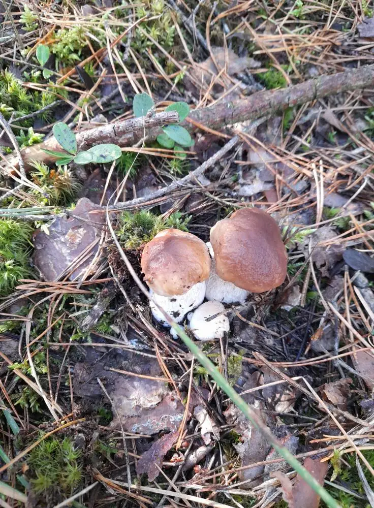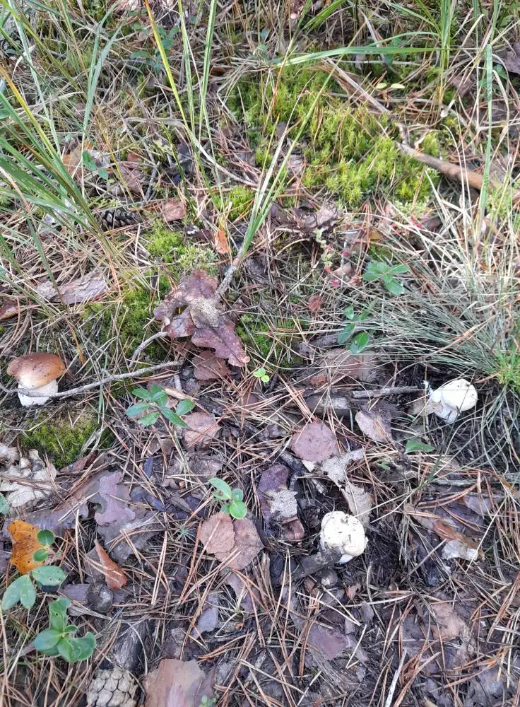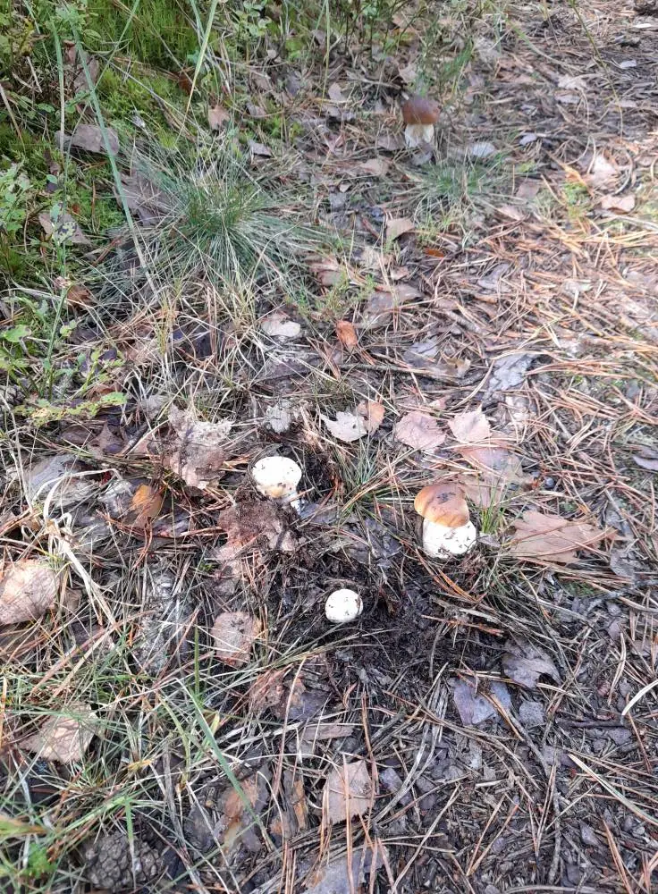 Білі красені ростуть купками, ховаючись у хвої та опалому листі.