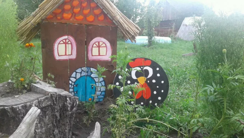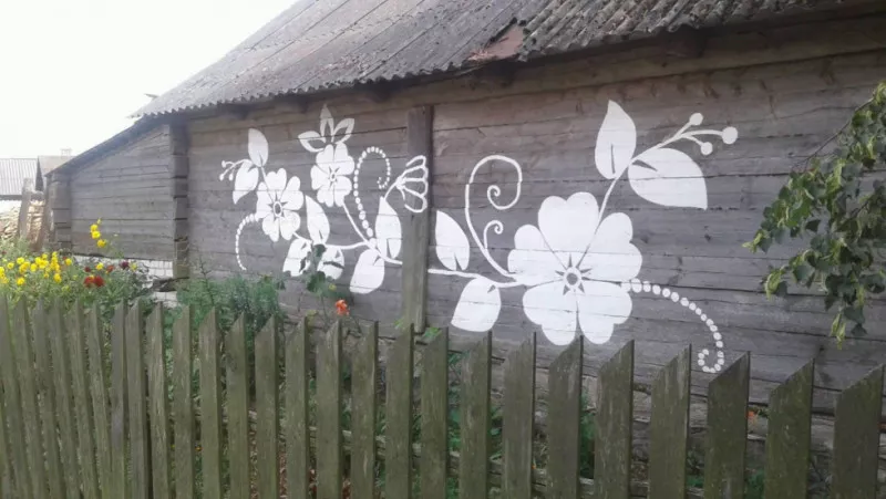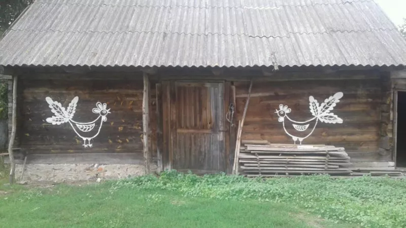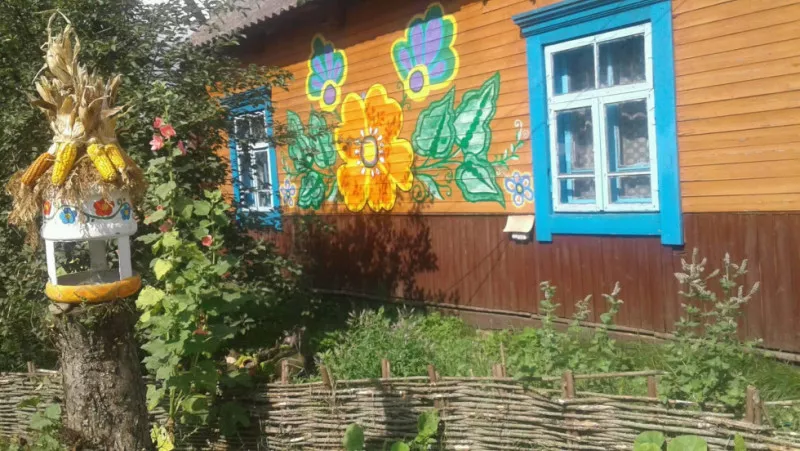Письменниця з Луцька Наталія Гуркіна, перебуваючи на відпочинку у селі на Волині, розмалювала в українському стилі прості хатинки.