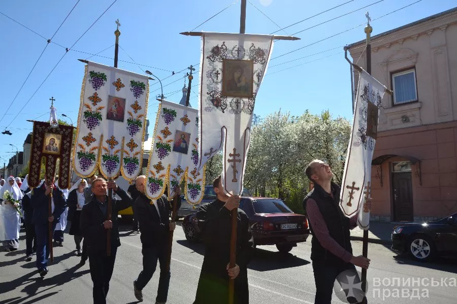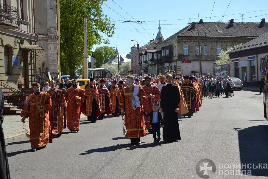 Процесія розпочалася у Свято-Покровському храму. Її очолив єпископ Волинський і Луцький Нафанаїл, участь у ній взяли сонм священнослужителів УПЦ Луцька і навколишніх сіл, студенти ВДС та велика кількість вірян, зокрема, і учасниці Волинського православного сестринства на честь святих жінок-мироносиць.
