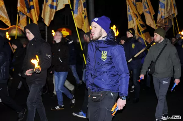 Окрім смолоскипів учасники запалили фаєри, а очолював колону автомобіль, на вантажному відділенні якого стояв чоловік з мегафоном та вигукував гасла. Їх підхоплювали інші учасники маршу.
