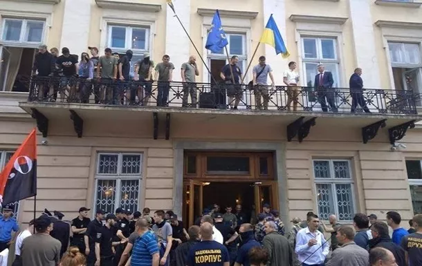 Начальник штабу Національного корпусу зі львівського осередку Святослав Сірий заявив, що радикали увірвалися в облраду через невиконання вимог, пише Українська правда.