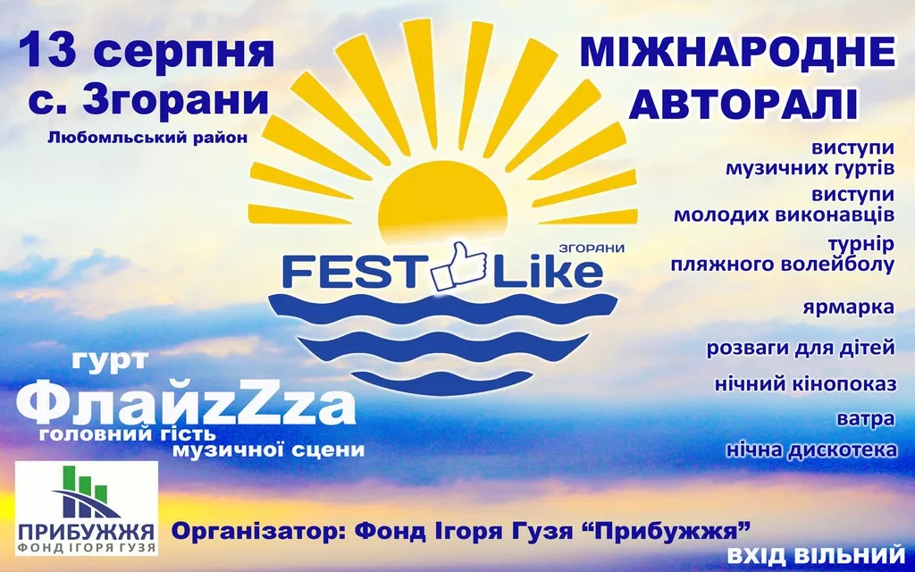 13-го серпня у селі Згорани Любомльського району другий рік поспіль відбувся фестиваль “FEST.Like”, родзинкою котрого стало міжнародне авторалі. Музичну програму склали українські гурти, а хедлайнером стали “ФлайzZza”.