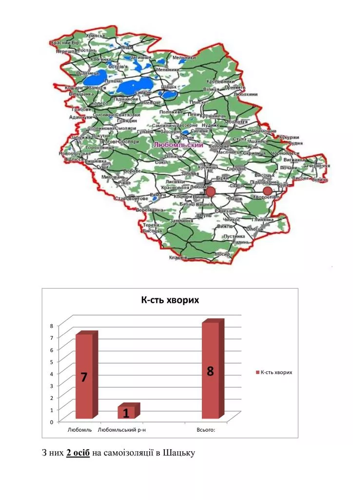 Таким чином, як повідомляє Центр первинної медичної допомоги Любомльського району на своїй сторінці у фейсбук, станом на ранок 18-го травня на території району підтверджено 8 випадків інфікування.