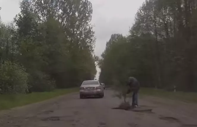 Замість того, щоб залатати ями на дорозі, у них ставлять дерева – аби попередити водіїв про небезпеку. Про це повідомляє КОРДОН. Так, щоб вказати на ями на дорозі Любомль – Володимир-Волинський, у них поставили дерева. Відео на Youtube виклавБогдан Климчук. Як видно на відео, деревця гарно прийнялися та зеленіють. ...
