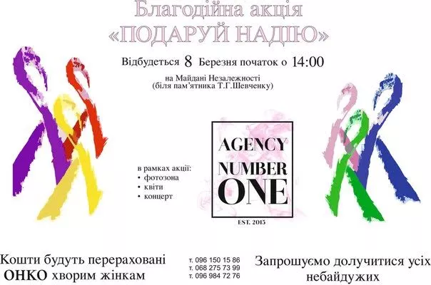 Акція відбудеться 8-го березня на Майдані Незалежності о 14:00. Всі виручені кошти зібрані під час заходу будуть перераховані на допомогу ОНКО хворим жінкам. ...