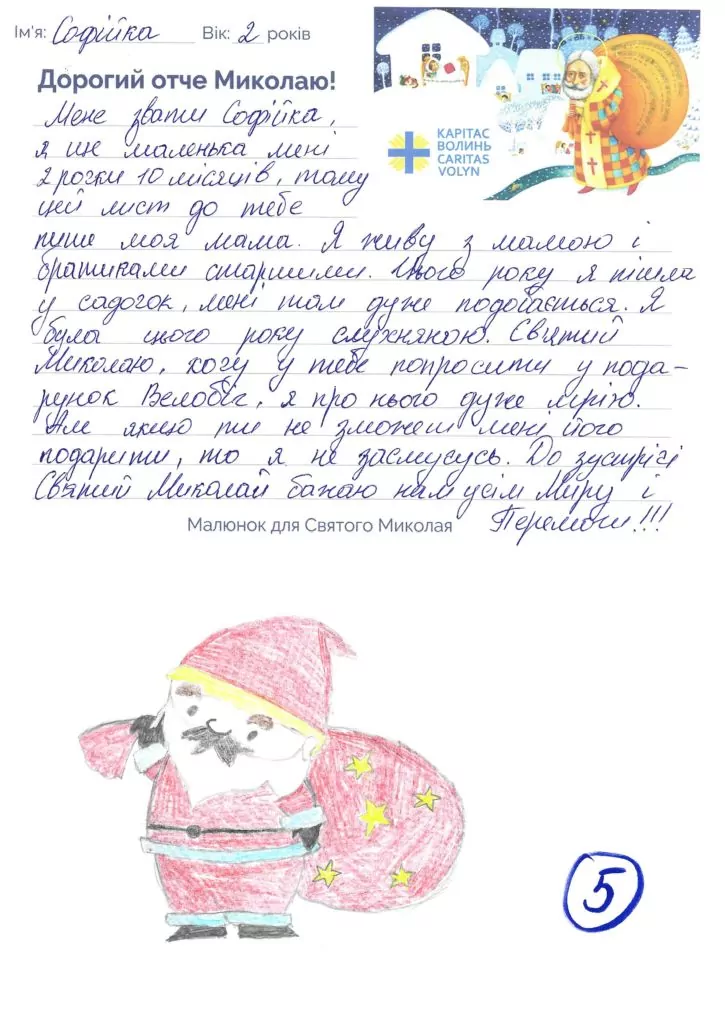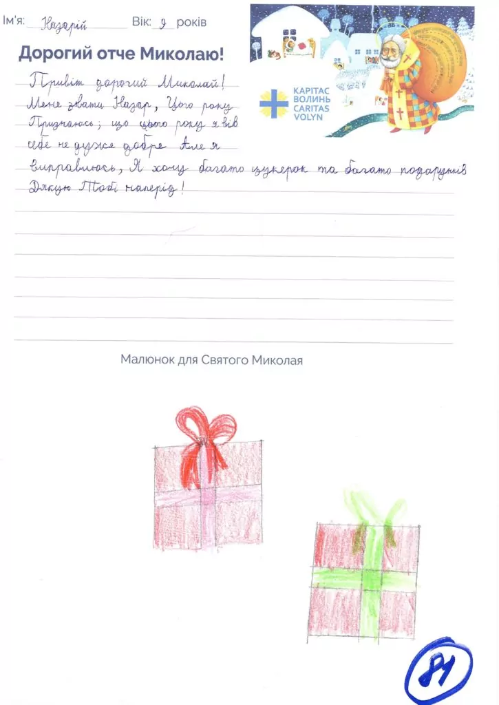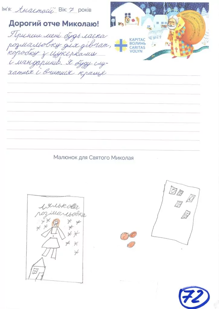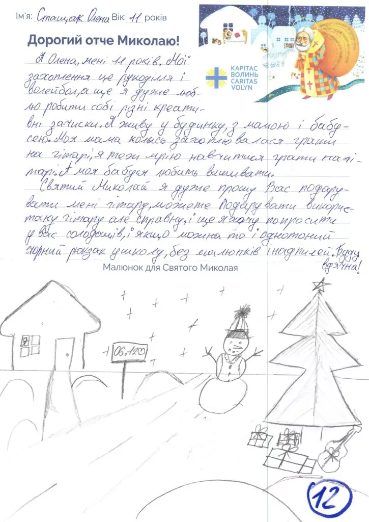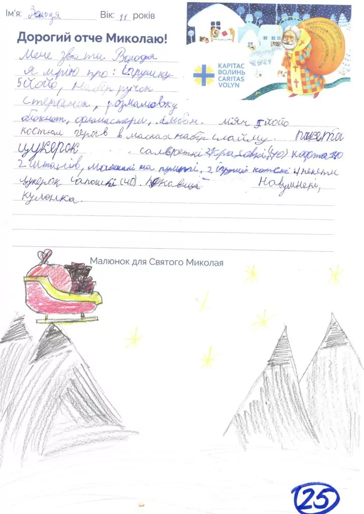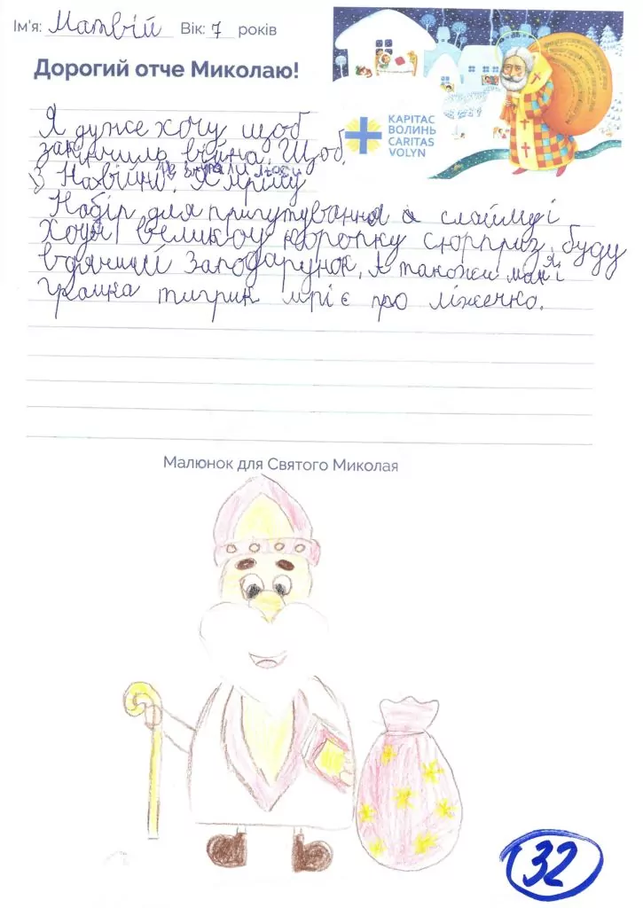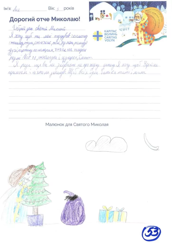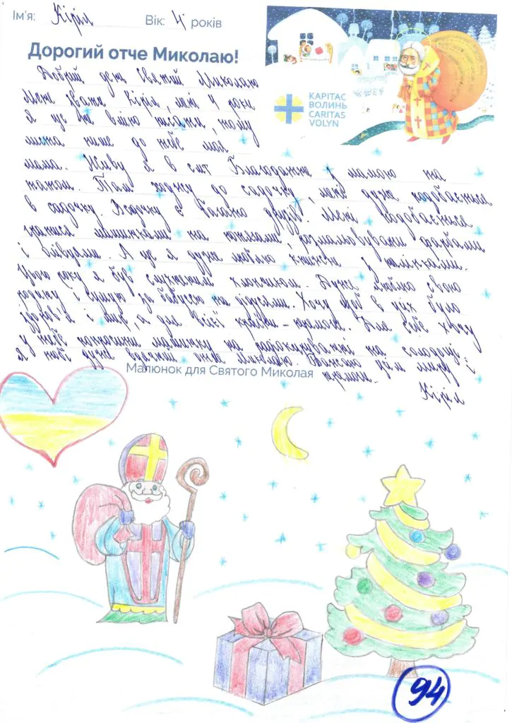 Небайдужі нововолинці обрали декілька листів задля здійснення дитячої мрії. У повідомленні до святого Миколая малеча вказала своє ім’я та вік, розповіла про родину, намалювала малюк та описала бажаний подарунок.