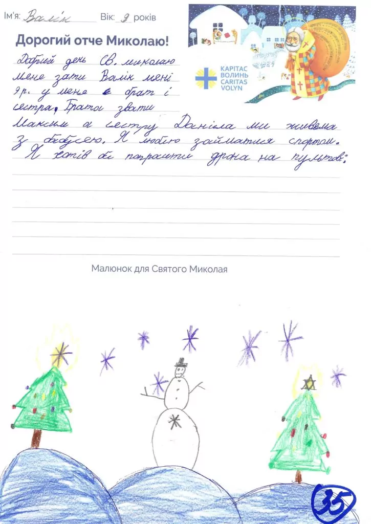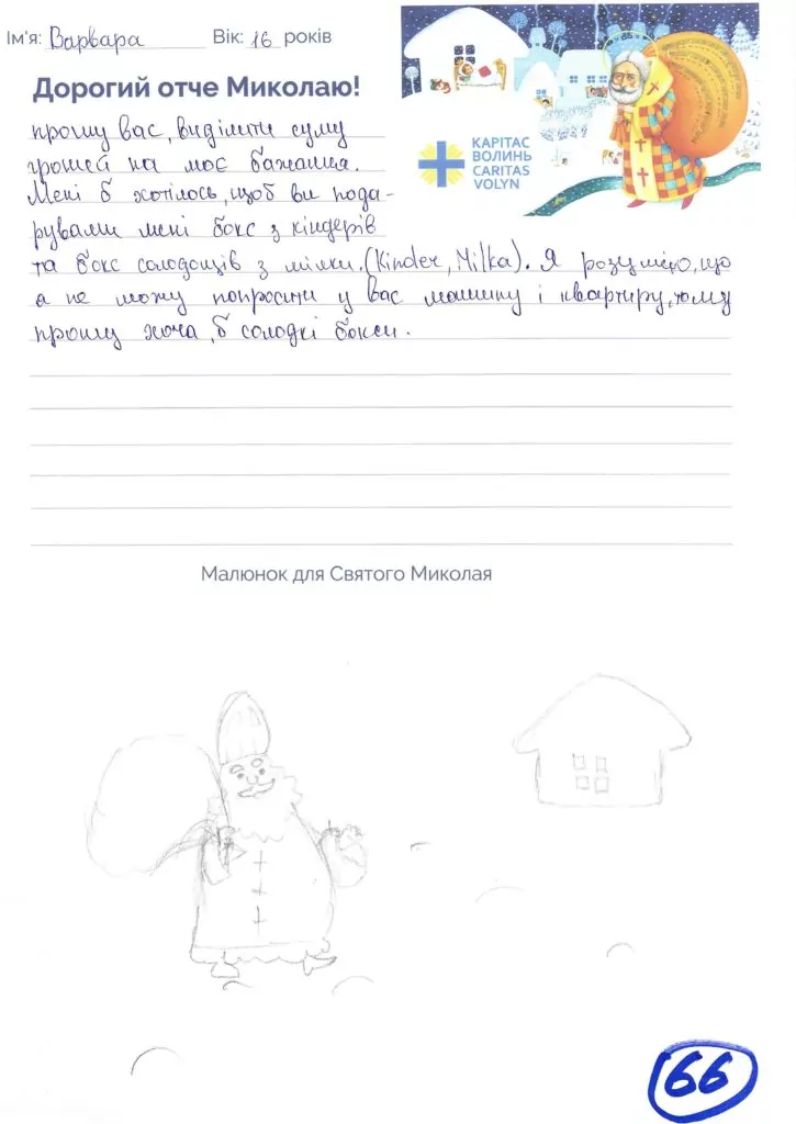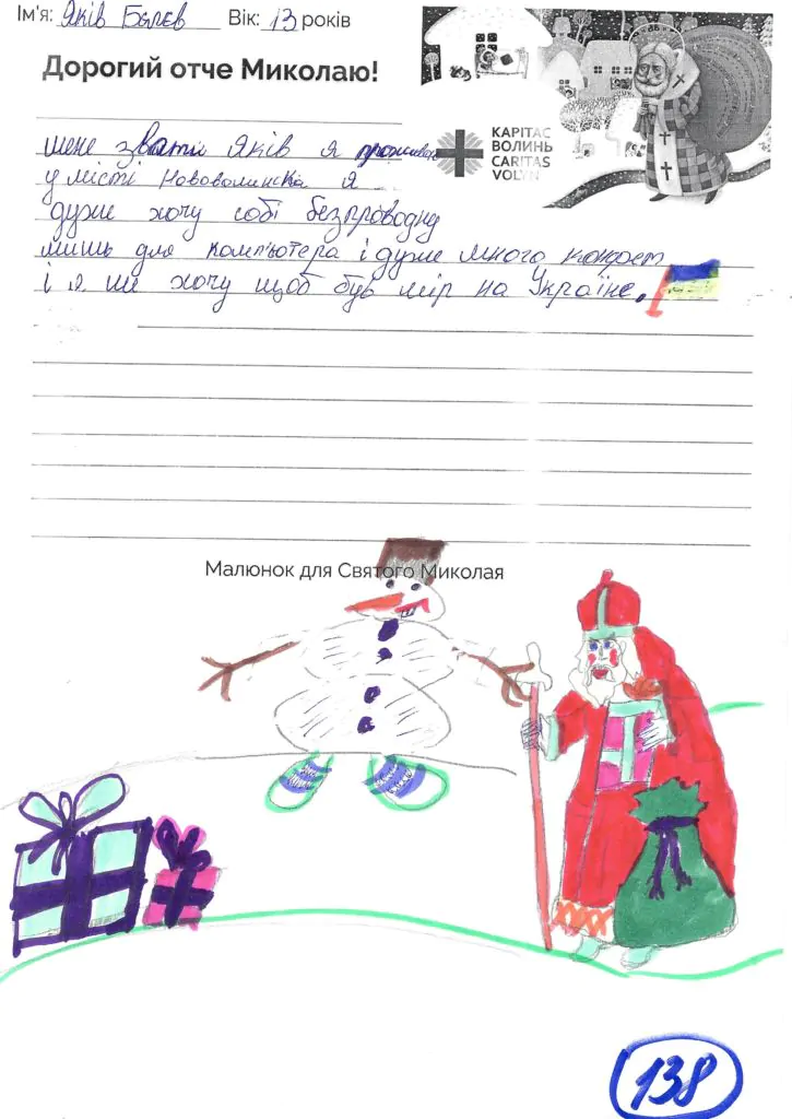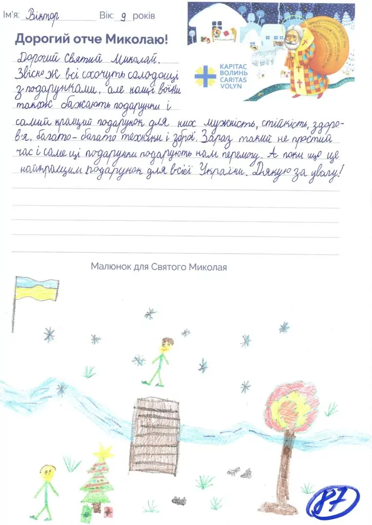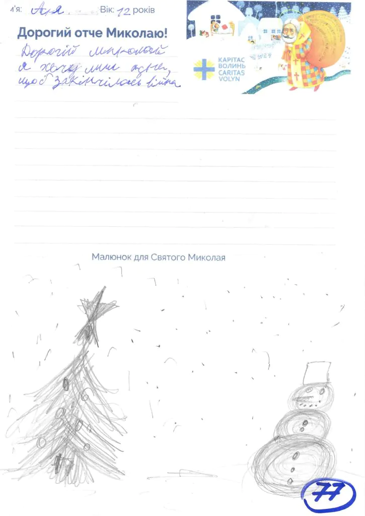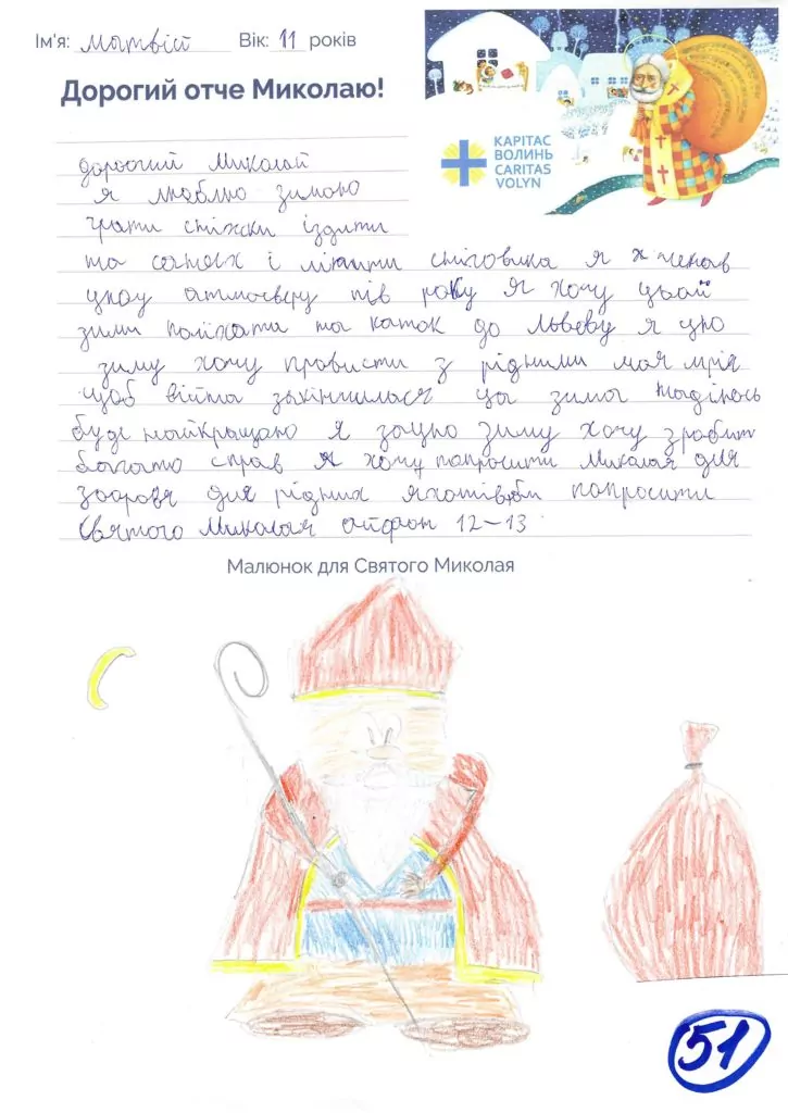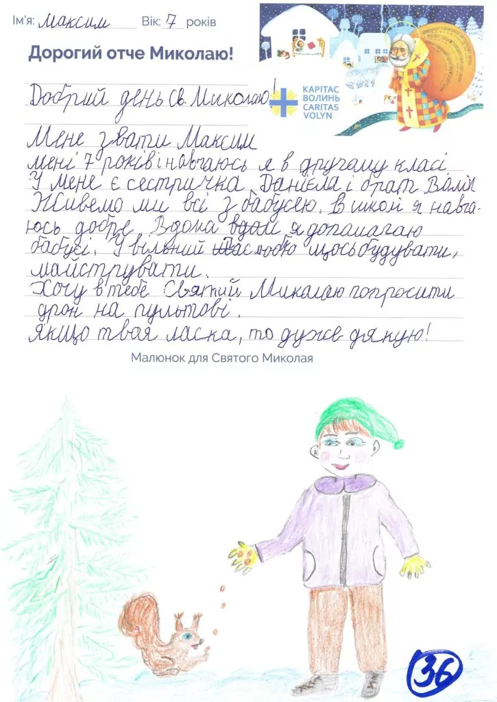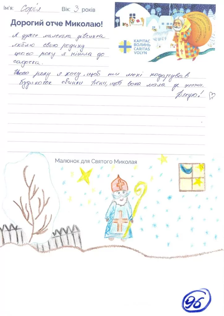 Небайдужі нововолинці обрали декілька листів задля здійснення дитячої мрії. У повідомленні до святого Миколая малеча вказала своє ім’я та вік, розповіла про родину, намалювала малюк та описала бажаний подарунок.