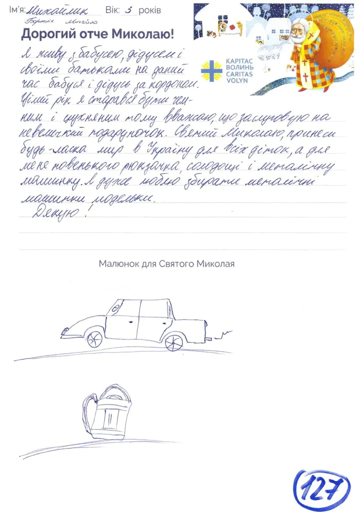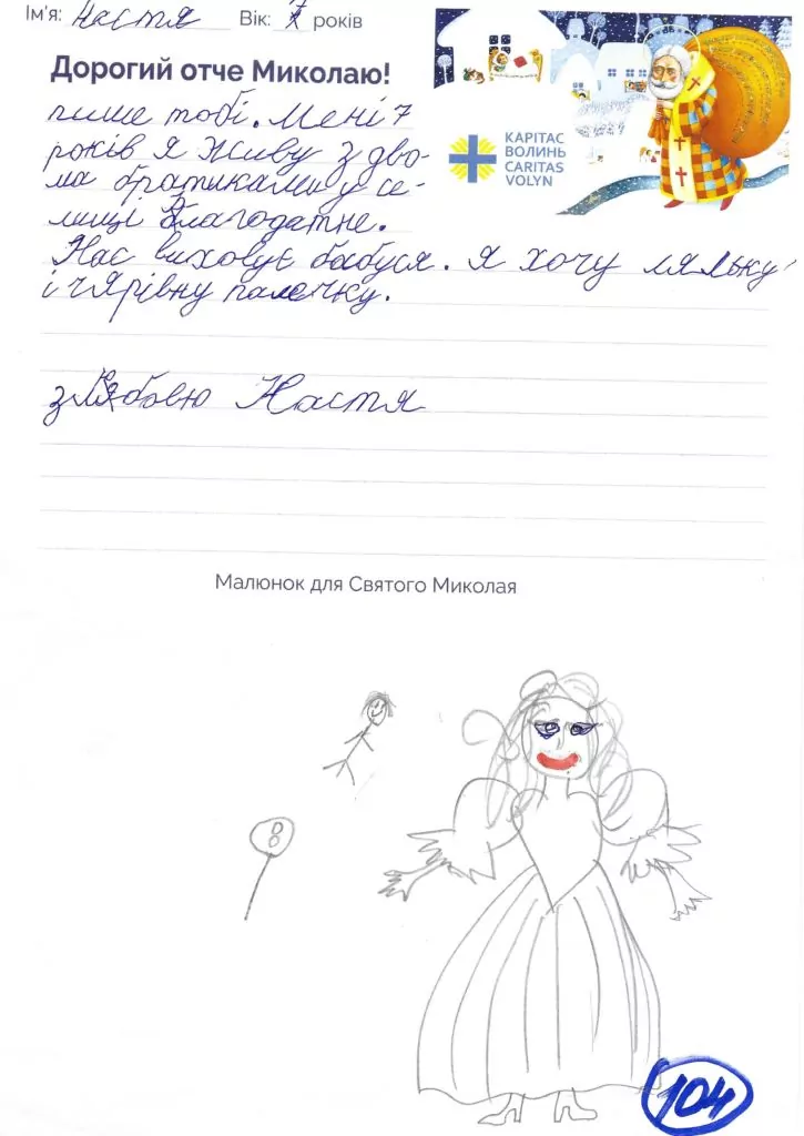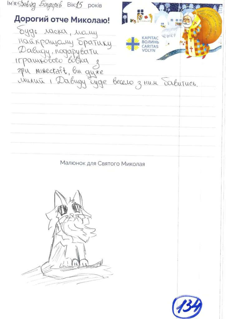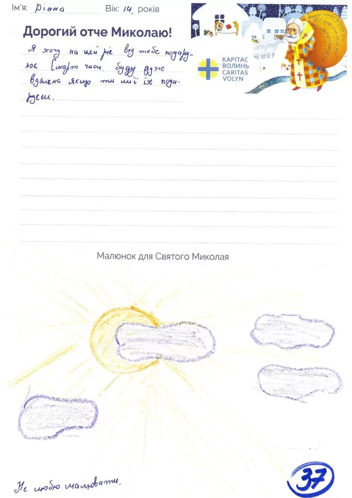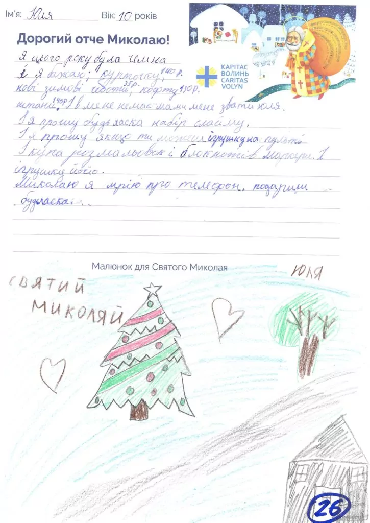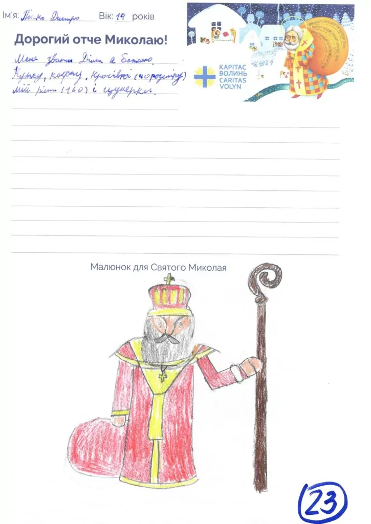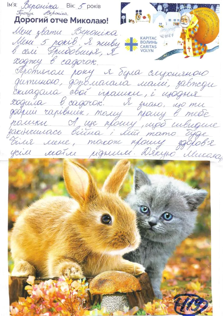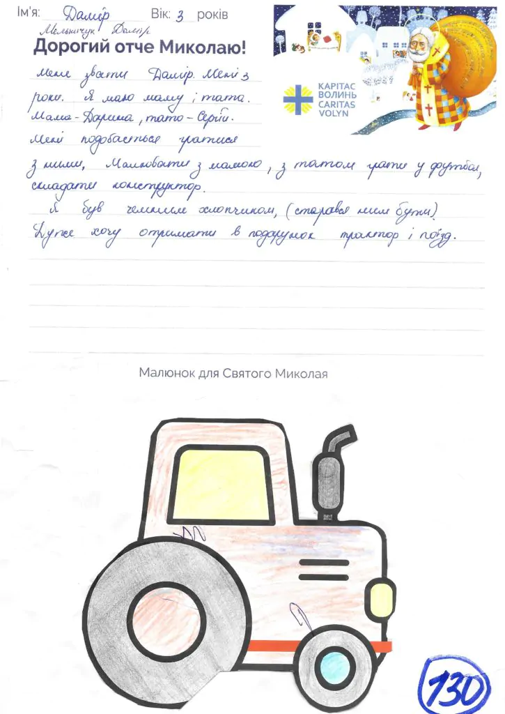 Небайдужі нововолинці обрали декілька листів задля здійснення дитячої мрії. У повідомленні до святого Миколая малеча вказала своє ім’я та вік, розповіла про родину, намалювала малюк та описала бажаний подарунок.