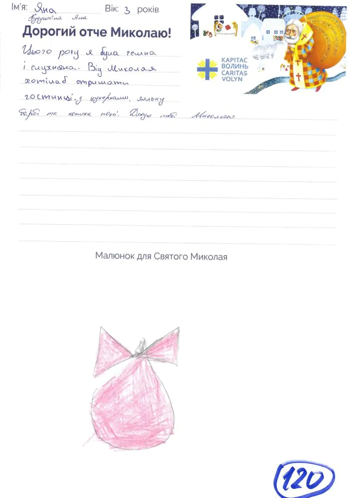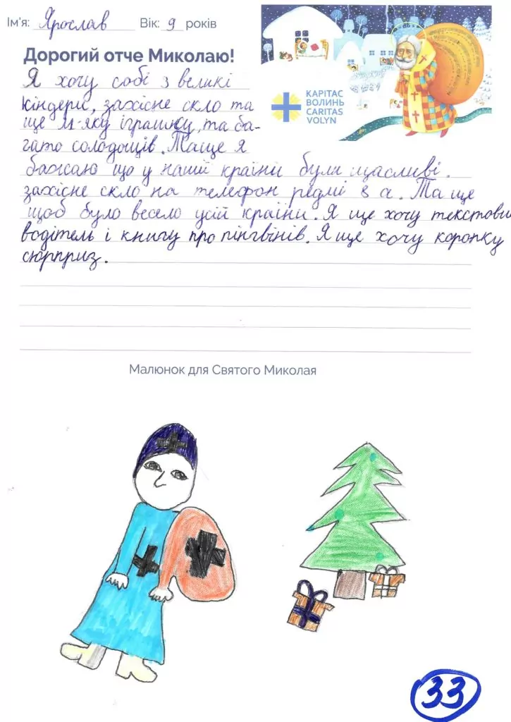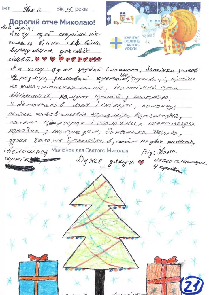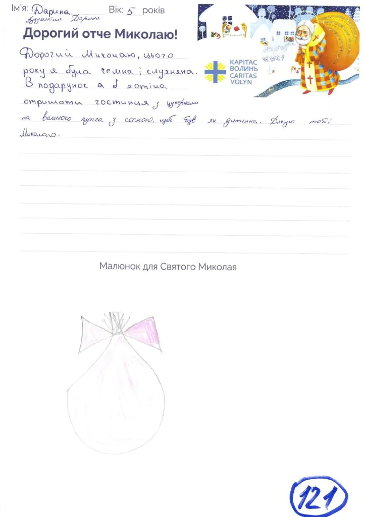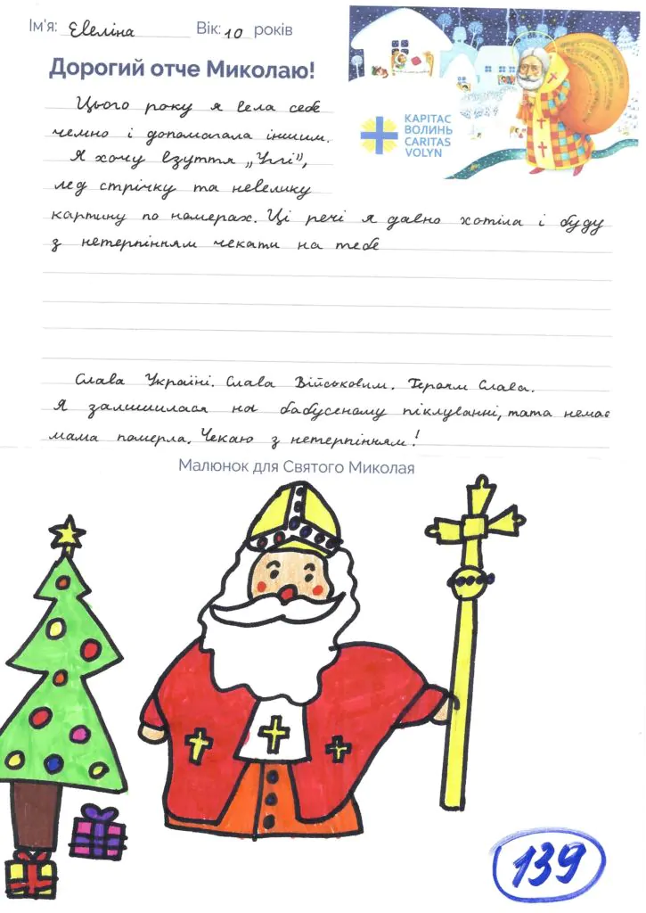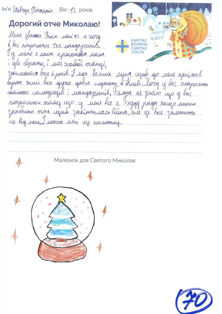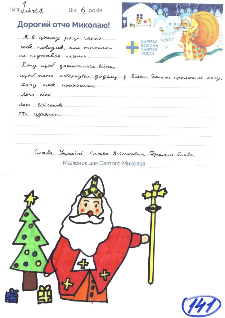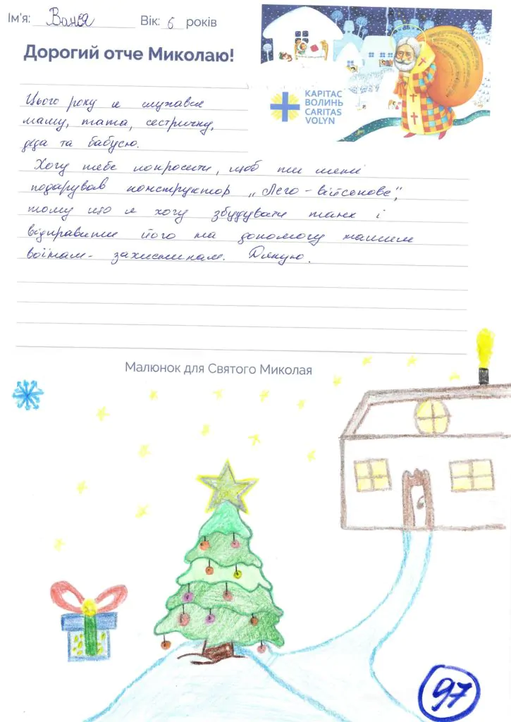 Небайдужі нововолинці обрали декілька листів задля здійснення дитячої мрії. У повідомленні до святого Миколая малеча вказала своє ім’я та вік, розповіла про родину, намалювала малюк та описала бажаний подарунок.