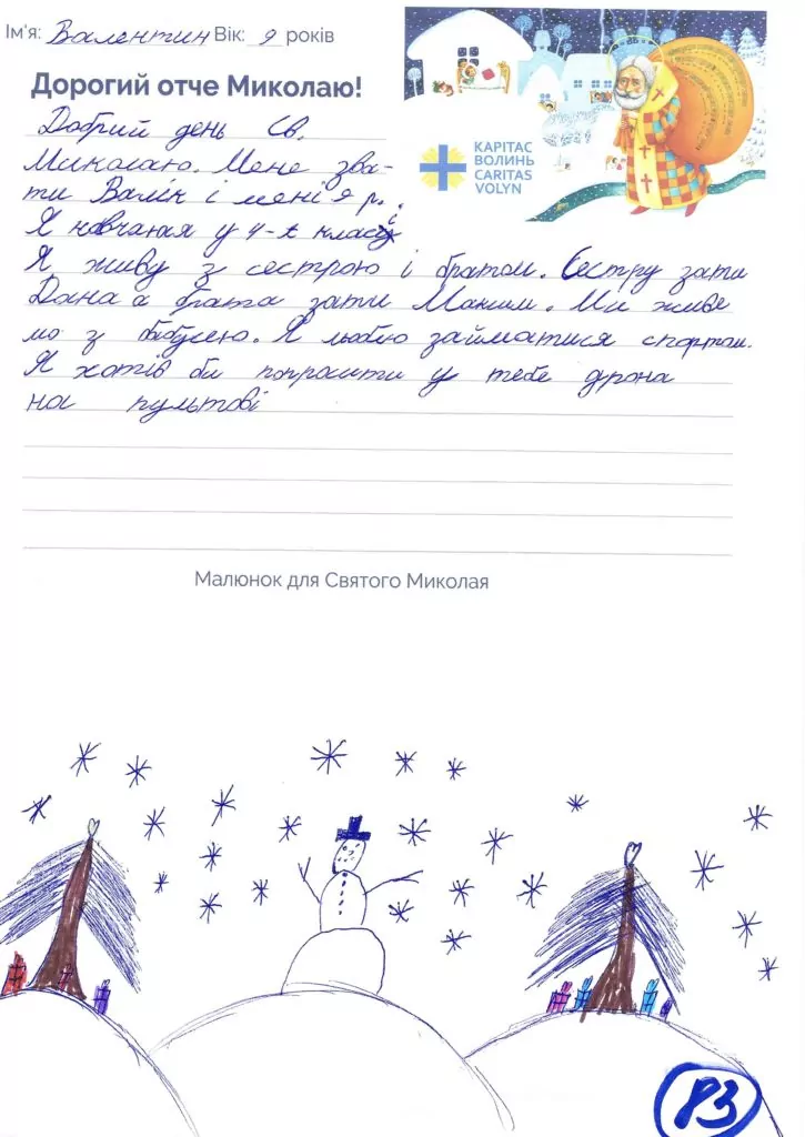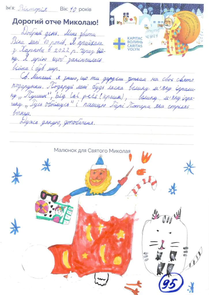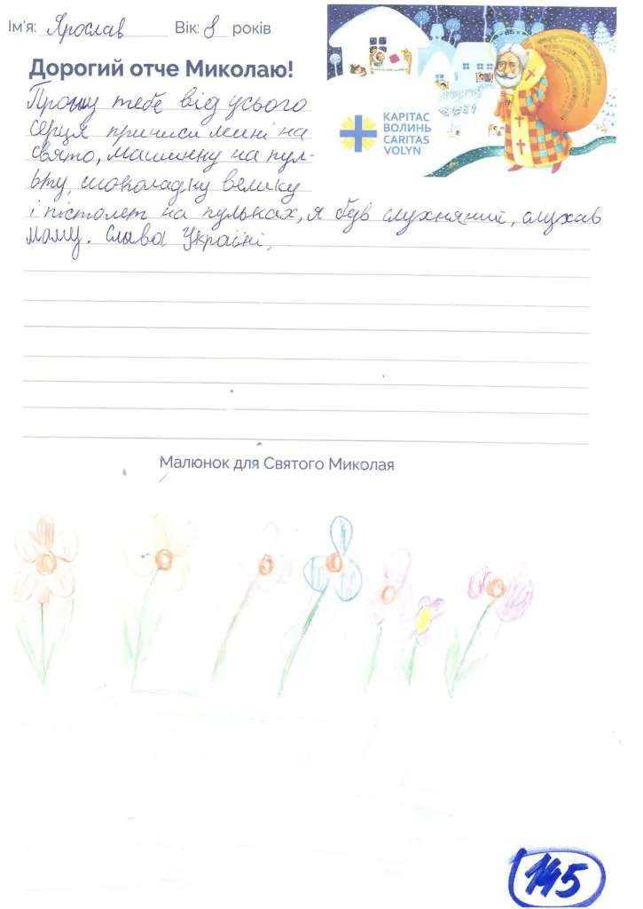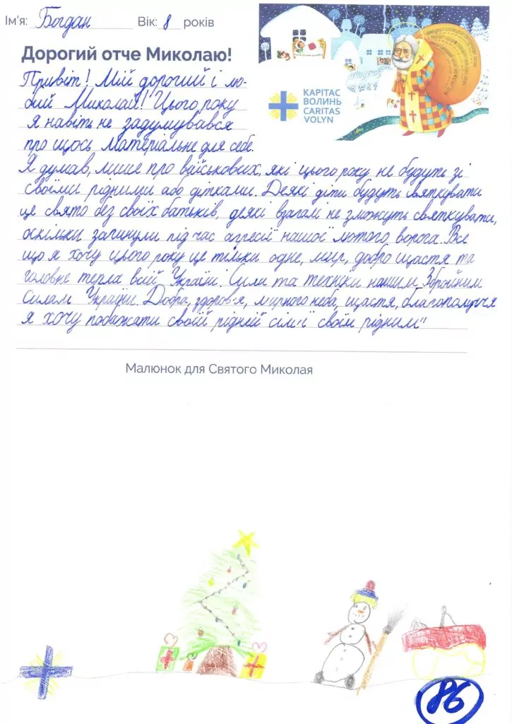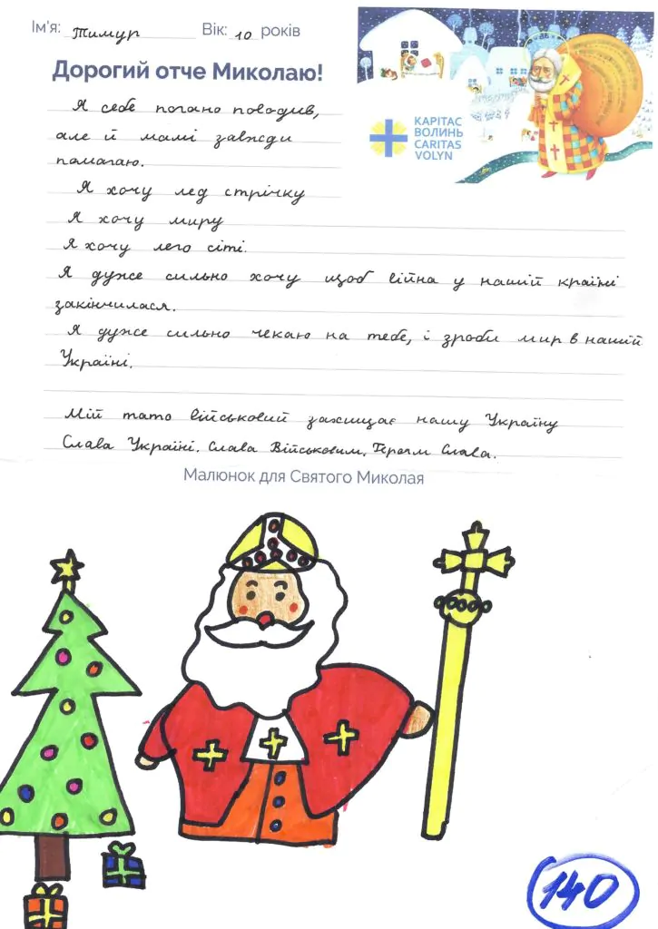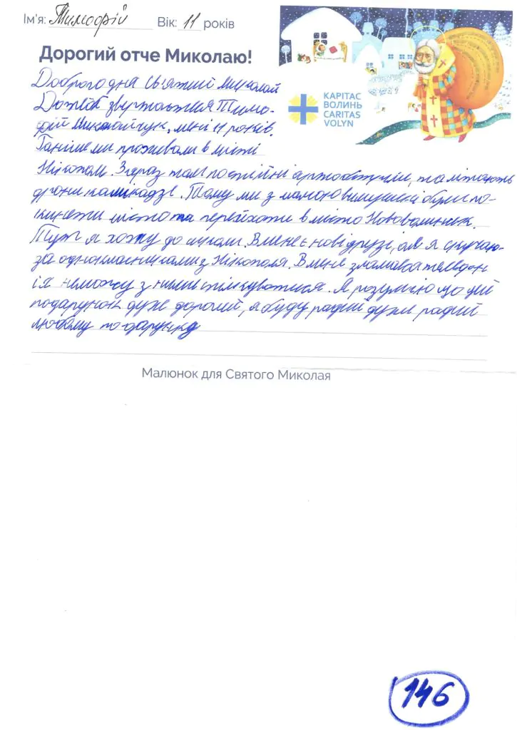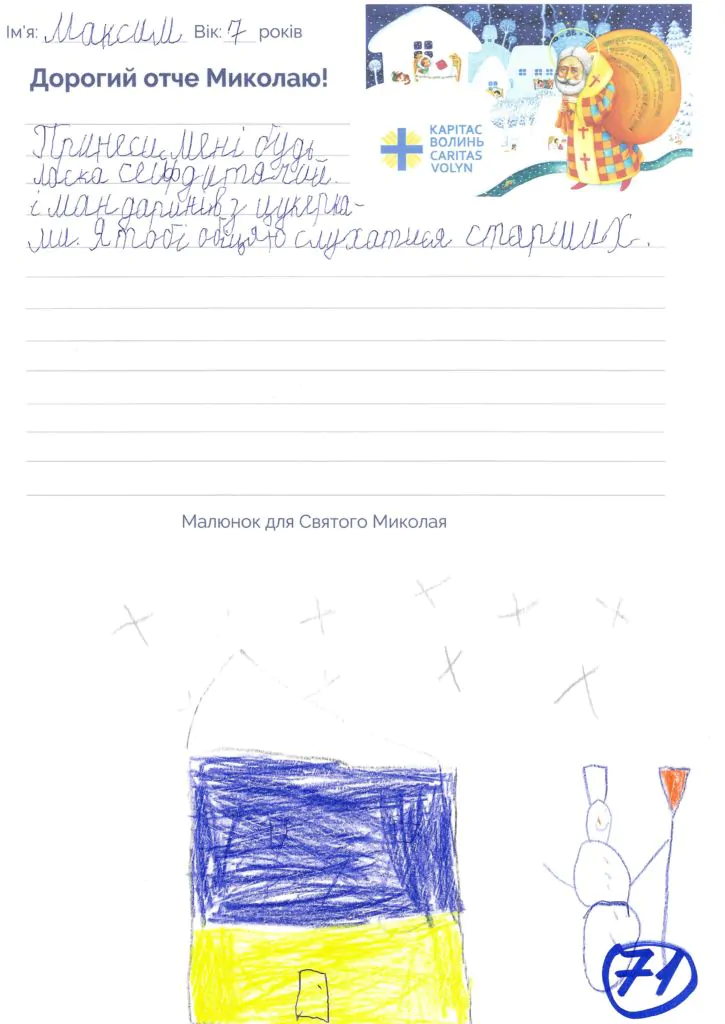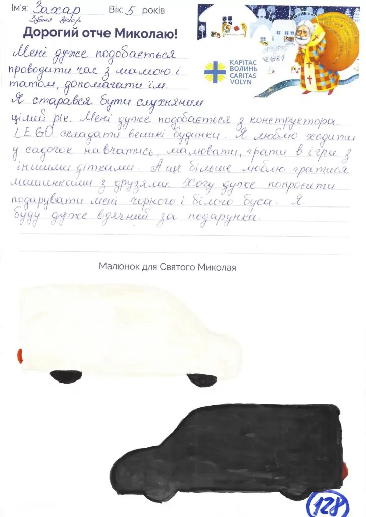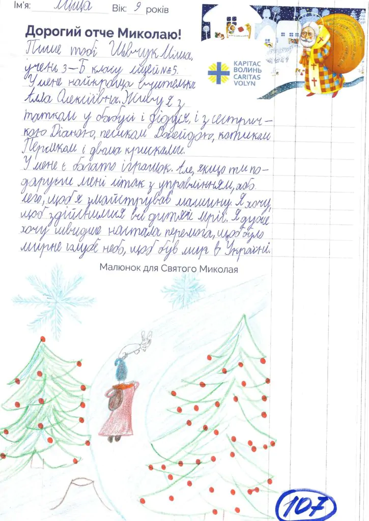 Небайдужі нововолинці обрали декілька листів задля здійснення дитячої мрії. У повідомленні до святого Миколая малеча вказала своє ім’я та вік, розповіла про родину, намалювала малюк та описала бажаний подарунок.