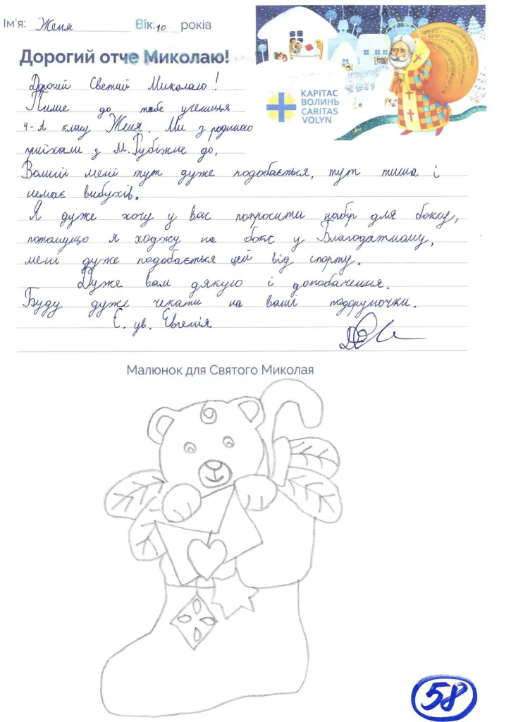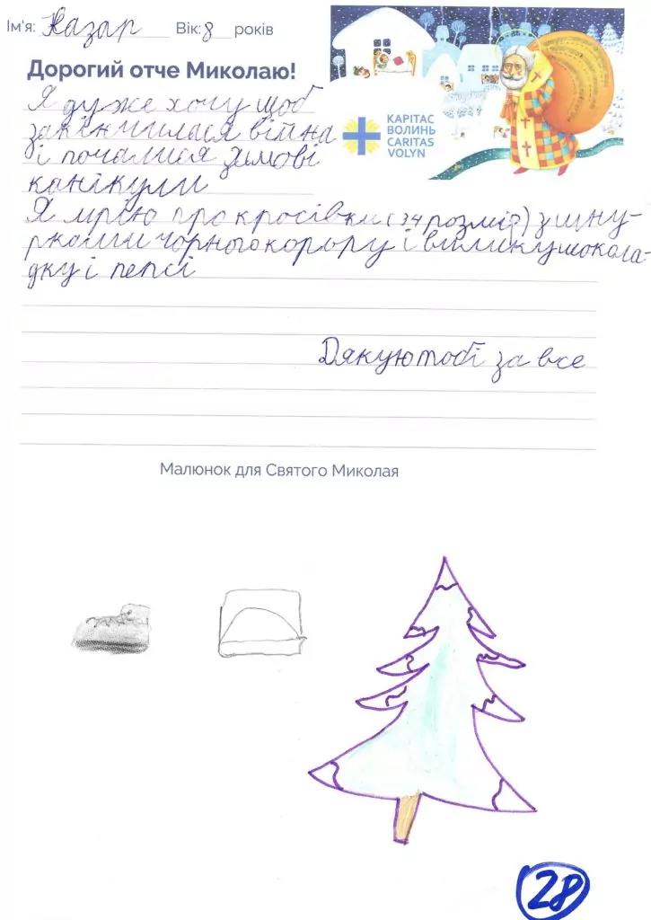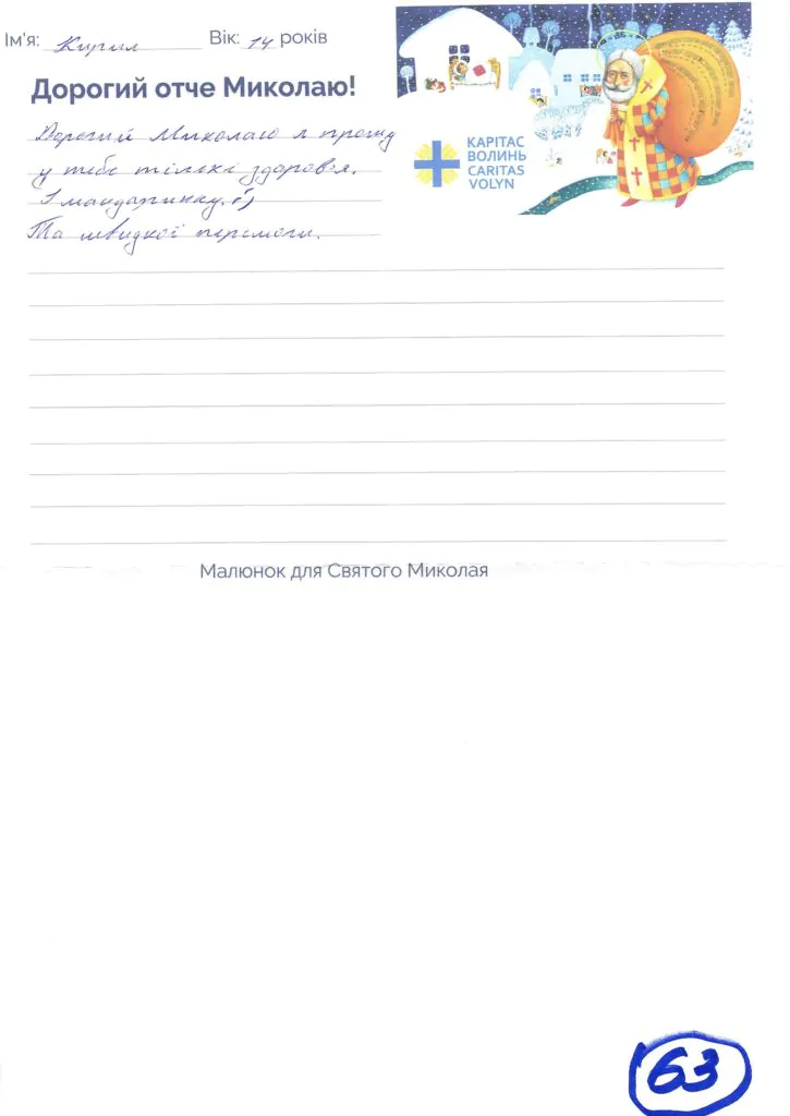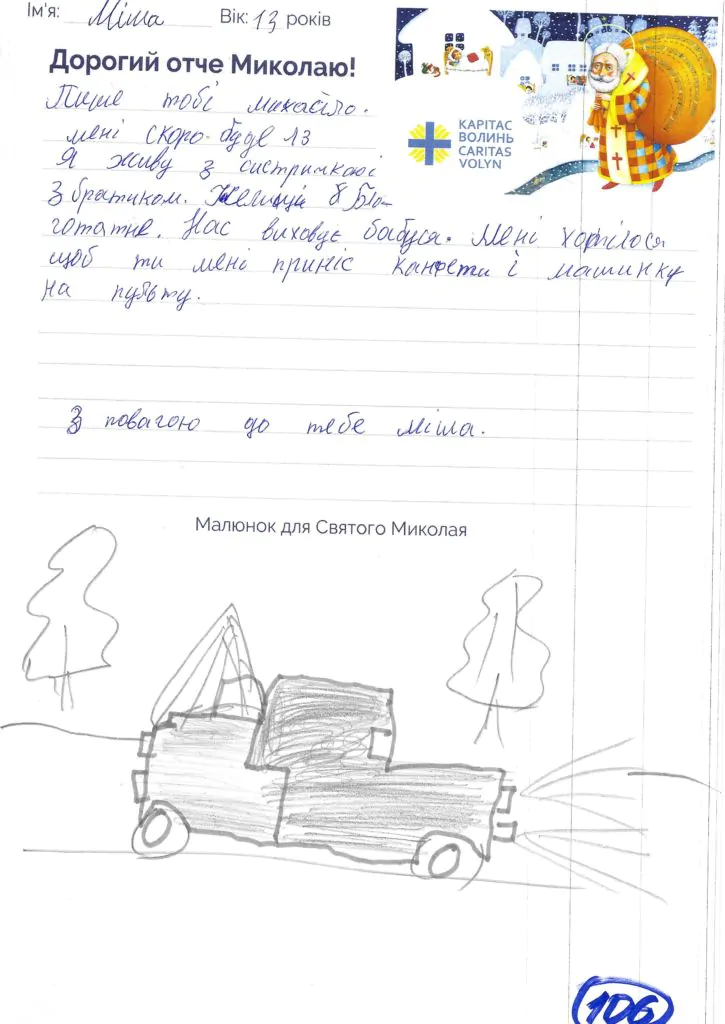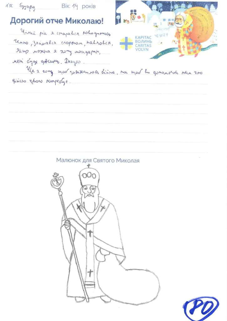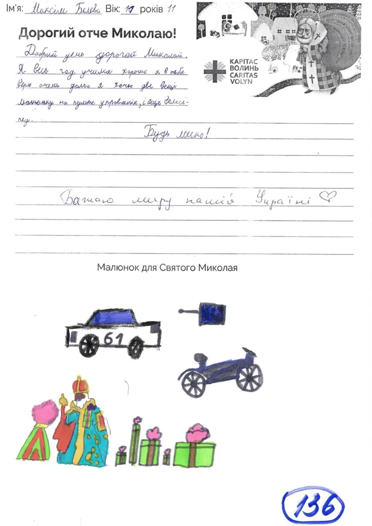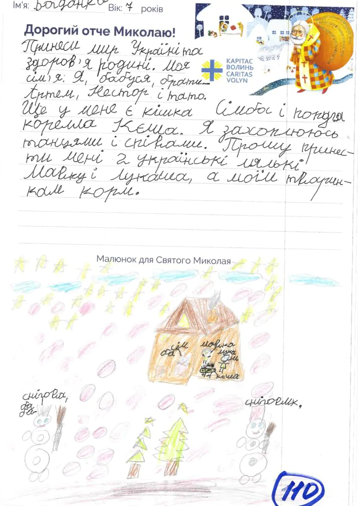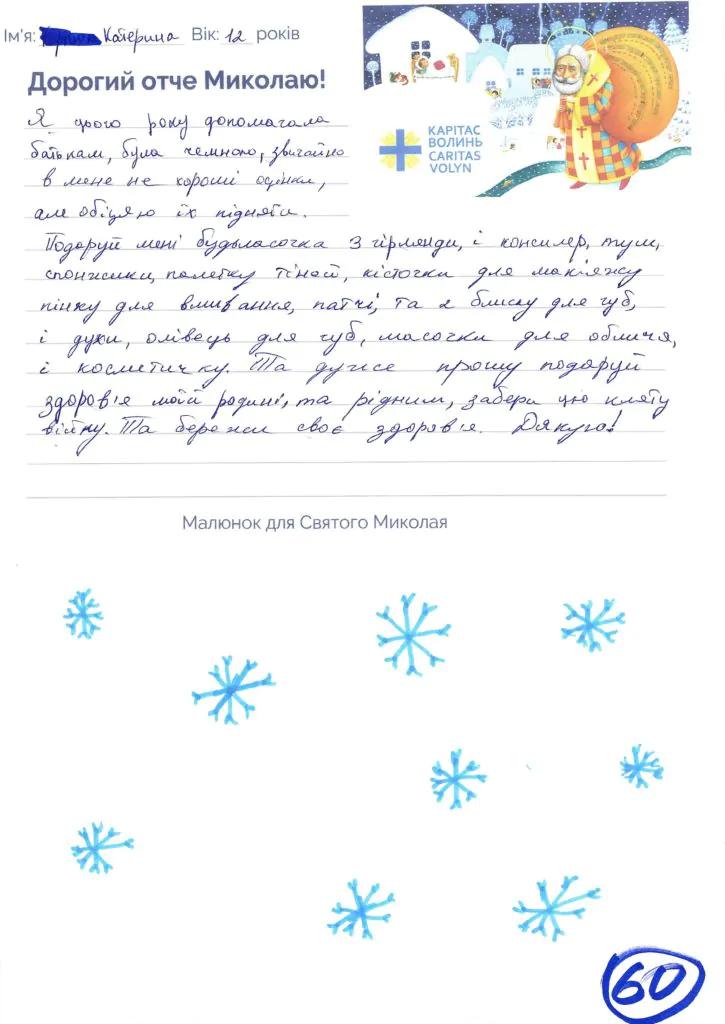 Небайдужі нововолинці обрали декілька листів задля здійснення дитячої мрії. У повідомленні до святого Миколая малеча вказала своє ім’я та вік, розповіла про родину, намалювала малюк та описала бажаний подарунок.