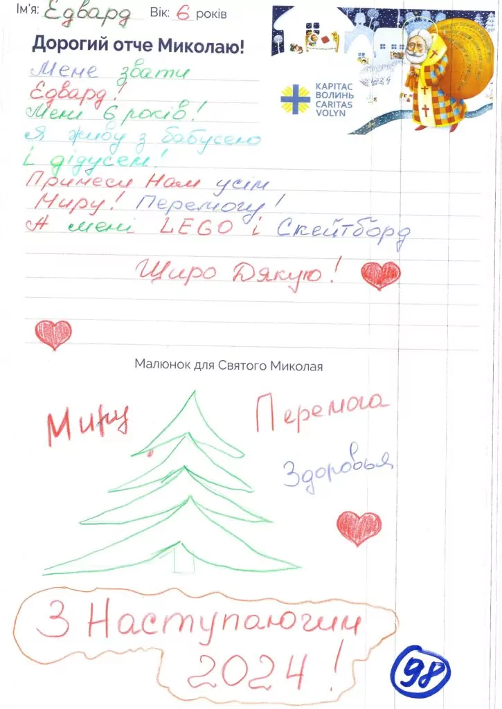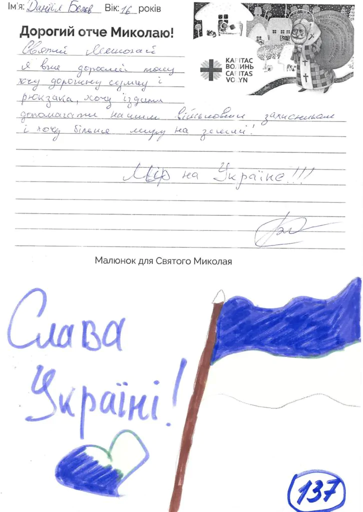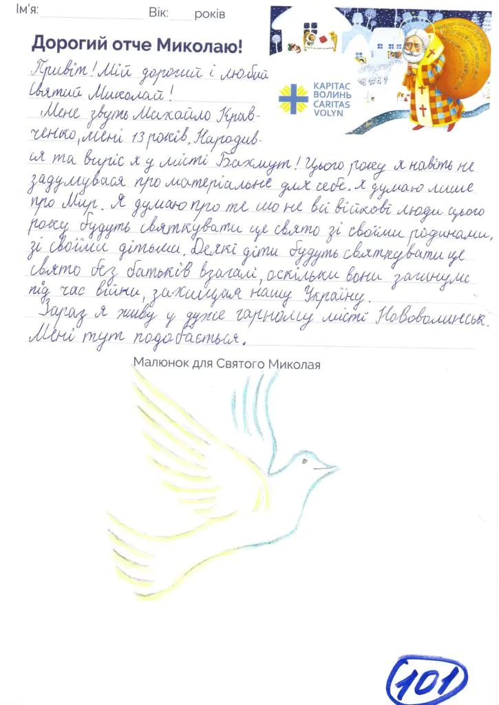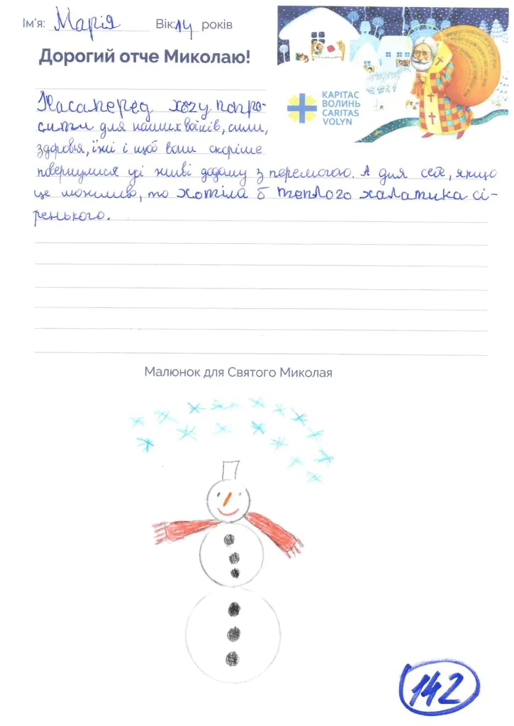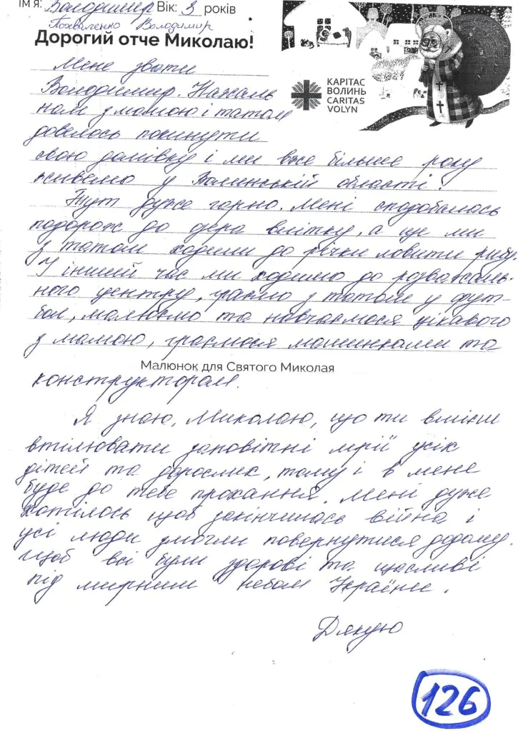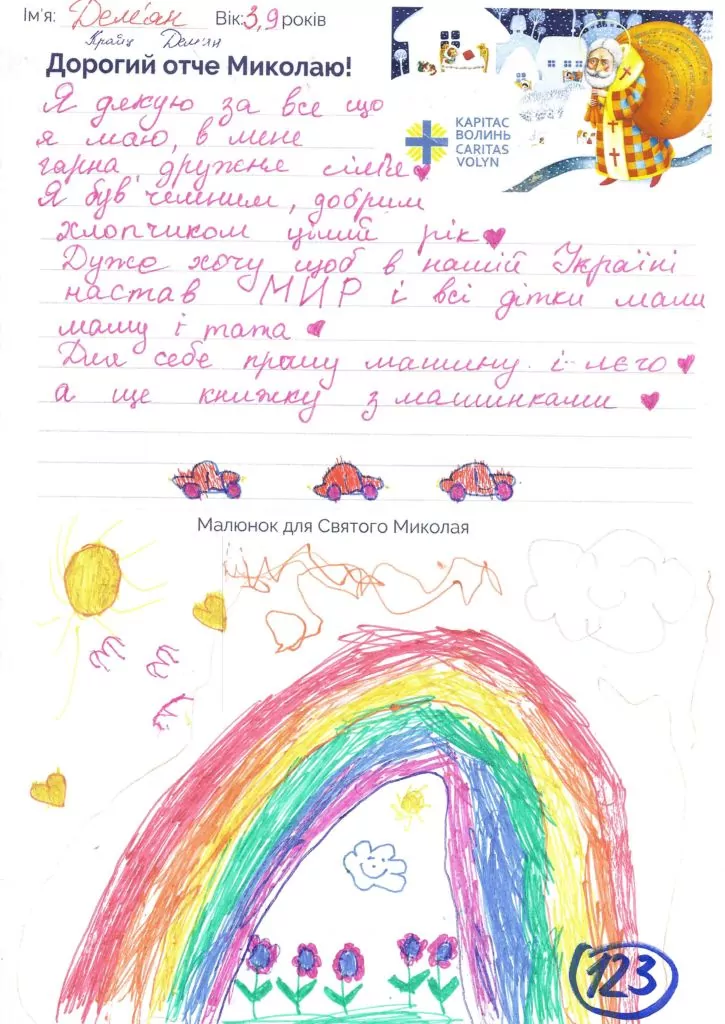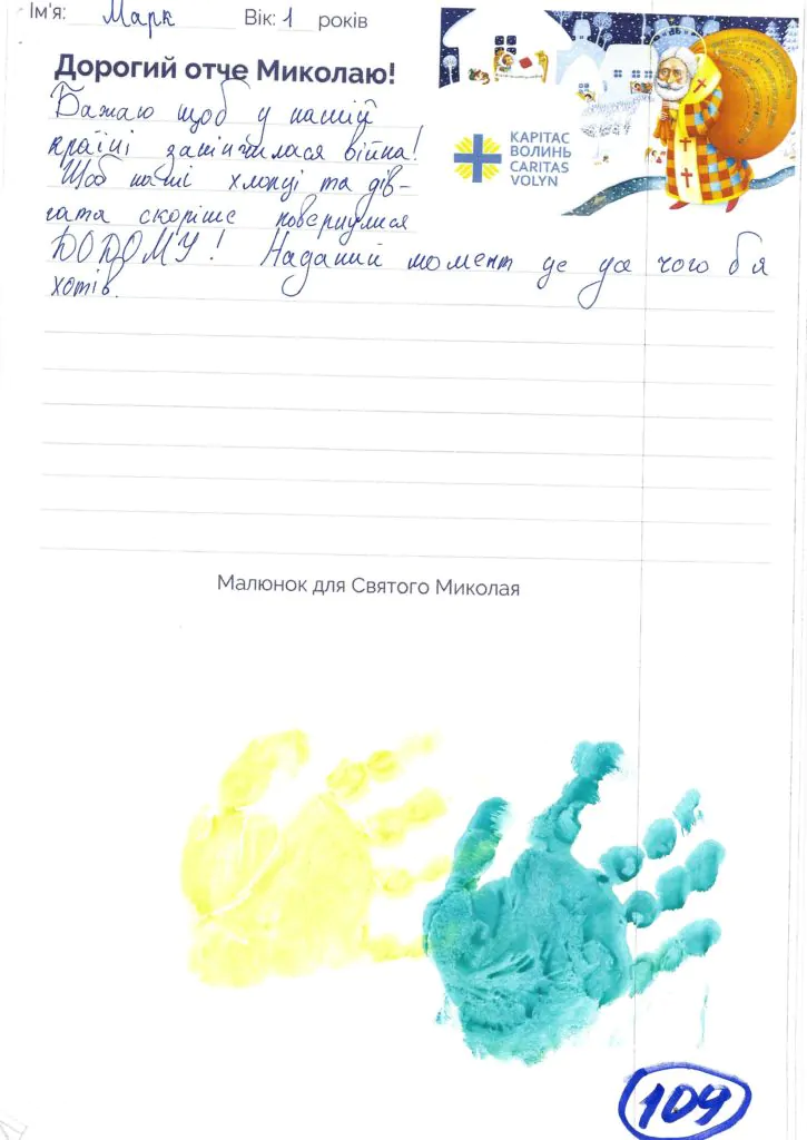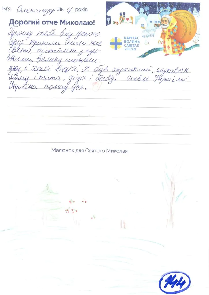 Небайдужі нововолинці обрали декілька листів задля здійснення дитячої мрії. У повідомленні до святого Миколая малеча вказала своє ім’я та вік, розповіла про родину, намалювала малюк та описала бажаний подарунок.