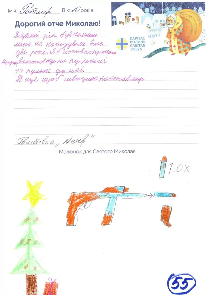 До слова, у листах йдеться про досить скромні подарунки, які надзвичайно порадують малюків. Діти просять святого Миколая про м’які іграшки, лего, солодощі, творчі набори, футбольний м’яч, колонки до комп’ютера, летючого змія, портфель, олівці для малювання, тощо.