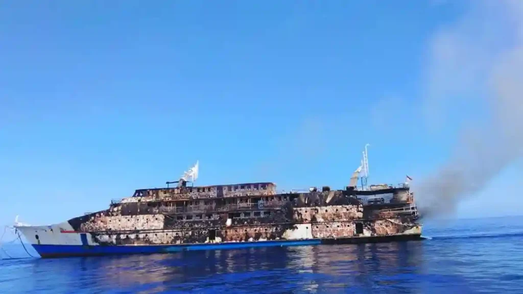 Місцеві ЗМІ опублікували відео з місця події, на якому видно, як десятки пасажирів стрибають у воду, намагаючись втекти від вогню. Рятувальні служби продовжують пошукову операцію в акваторії навколо місця загоряння.