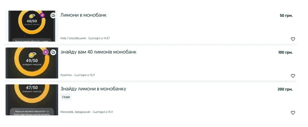 Поки monobank хижо від шаленої кількості охочих знайти лимони, українці вигадали нову схему заробітку. На OLX уже є оголошення, де пропонують знайти ті самі лимони за гроші.