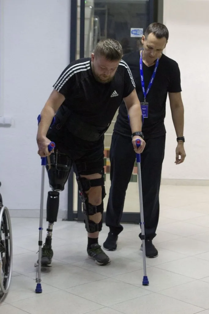 “До цього часу, як потрапив до нас на реабілітацію, знаходився вдома у відпустці. Маючи протез, він його не використовував. Він йому здавався незручним. Стояння на тому протезі йому було болісне, не вистачало тонусу м’язів нижніх кінцівок, тулуба, спини, тобто тут ми цим усім почали комплексно займатися”, — говрить фізичний терапевт.