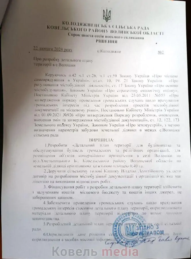 За словами очевидців, Віталій Лашта перешкоджав представнику проєктної організації робити зйомку земельної ділянки комунальної власності, згідно з рішенням Колодяжненської сільської ради від 22-го лютого 2024 року.