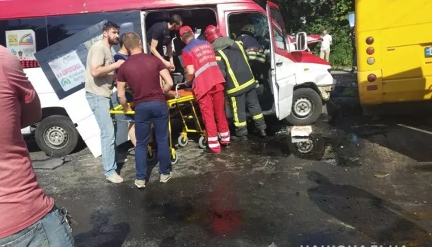 На Київщині в ДТП зіштовхнулись дві маршрутки та легковик: постраждали 26 людей