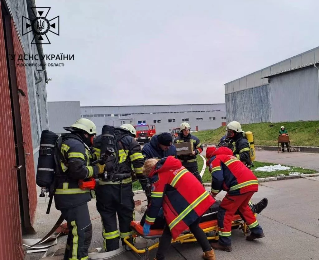 На меблевому підприємстві у Нововолинську «виникла пожежа»: рятувальники провели навчання
