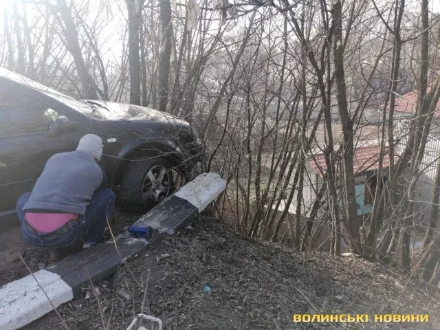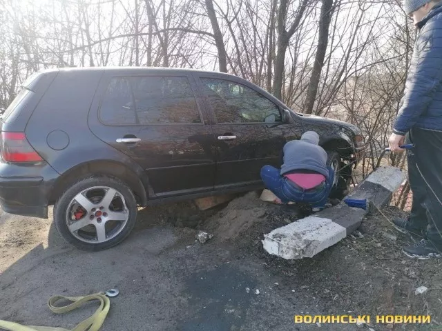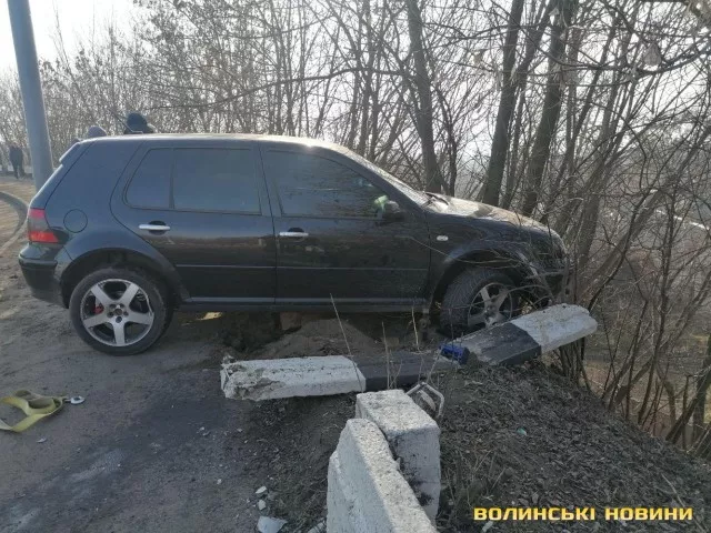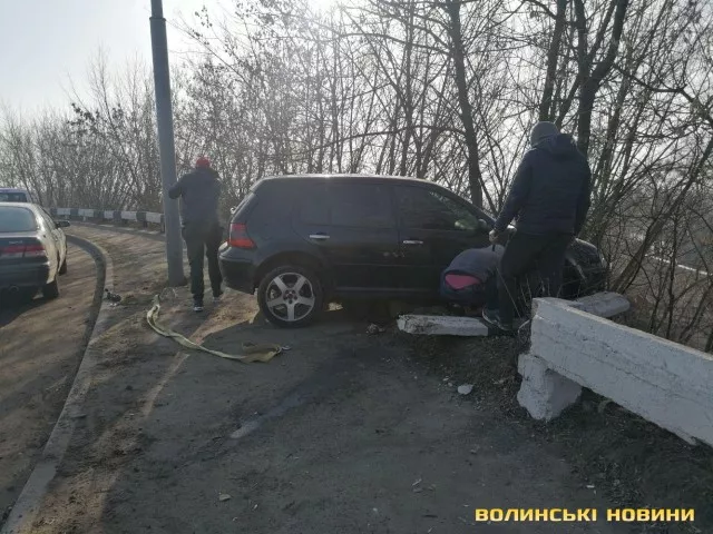 На мосту у Луцьку легковик зніс відбійник та завис над урвищем