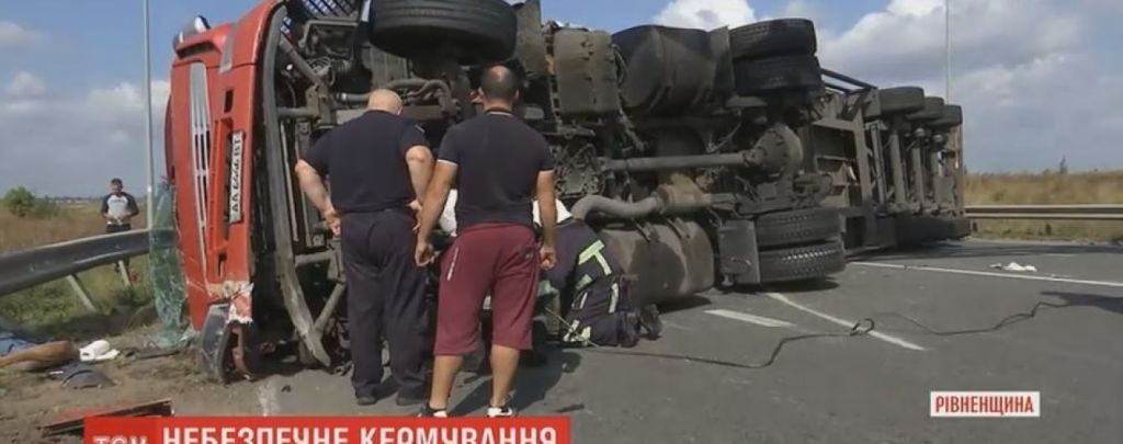 У Рівненській області, на 323-му кілометрі траси Київ-Чоп перекинулася фура, якою керував п’яний водій.