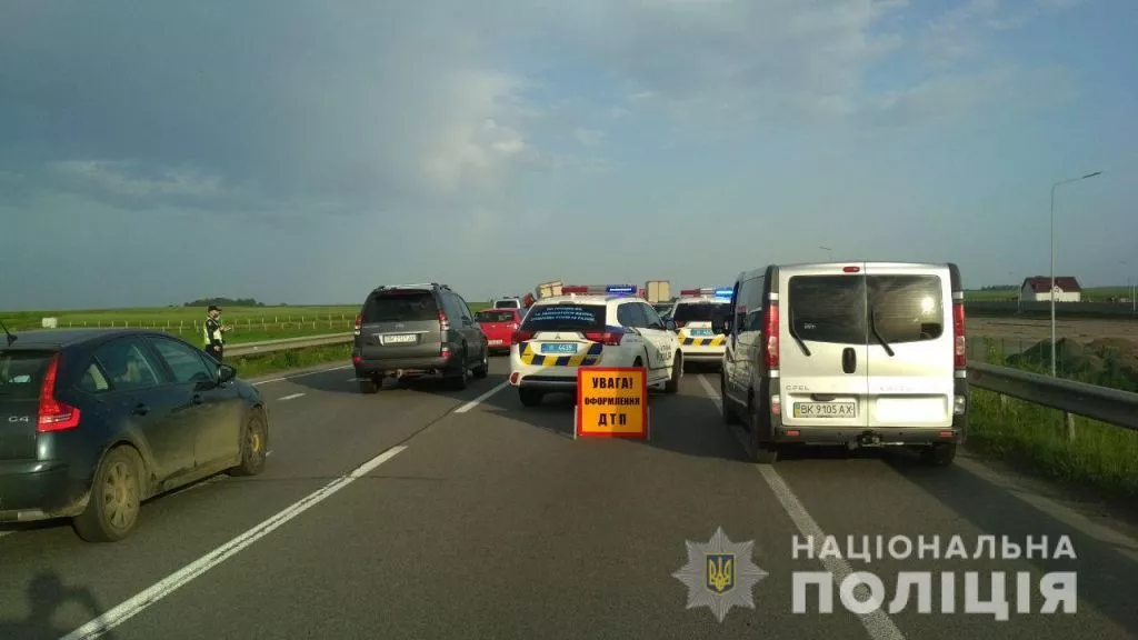 Автопригода за участю вантажівки та трьох легковиків сталася 7-го червня о 18:25 на автодорозі «Київ-Чоп» у селі Вересневе Рівненської області.