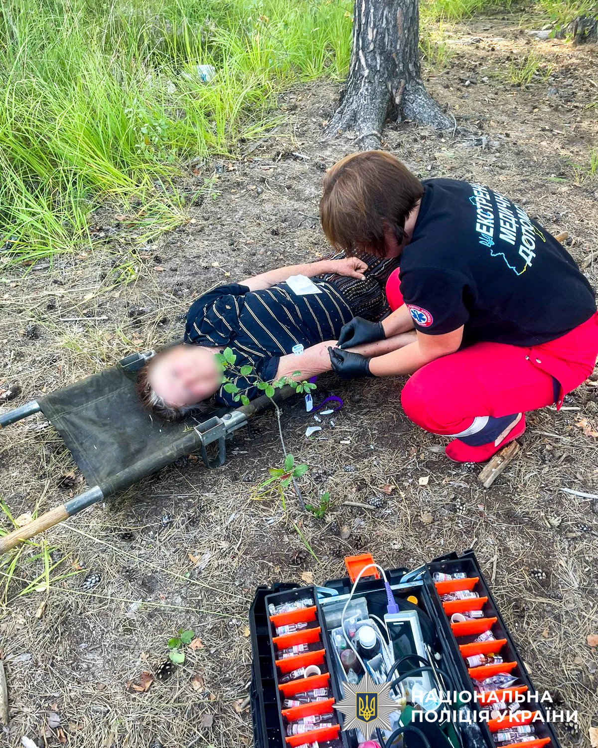 Оскільки до місця події не можна було дістатися автівкою, правоохоронець організував квадроцикл і викликав швидку допомогу. Разом із медиками поліцейський на ношах ніс жінку орієнтовно 600 метрів до транспорту. Пенсіонерку госпіталізували, наразі загрози її життю немає.