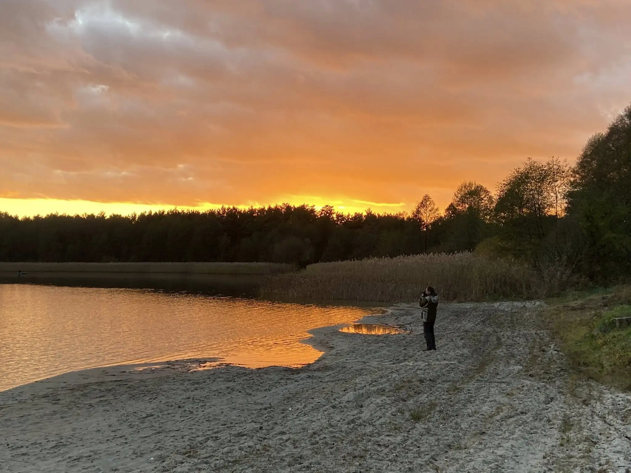 Жінка також поділилася атмосферними фото осіннього лісу та заходу сонця на березі місцевого озера, які підкреслюють красу волинської природи в цю пору року.