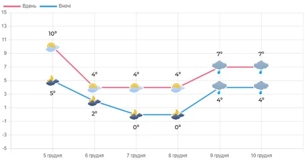 Температура 6 грудня становитиме вночі 0–5°, вдень — 2–7° тепла.
