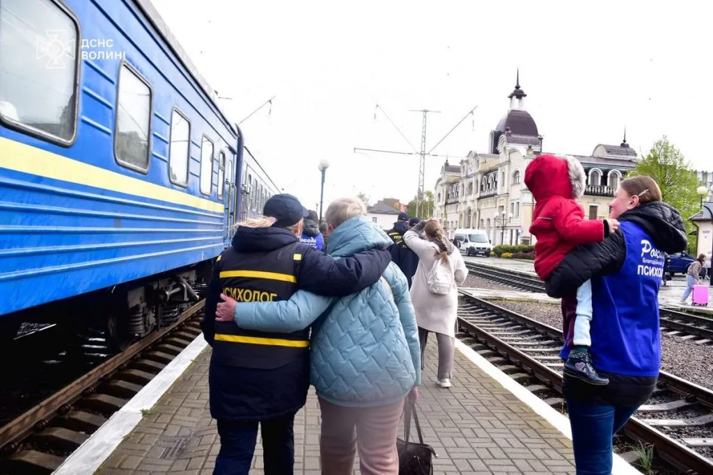 На Волині зустріли евакуаційний потяг, що прибув із Харківщини. Ним приїхали люди, які через війну змушені були залишити свої домівки.