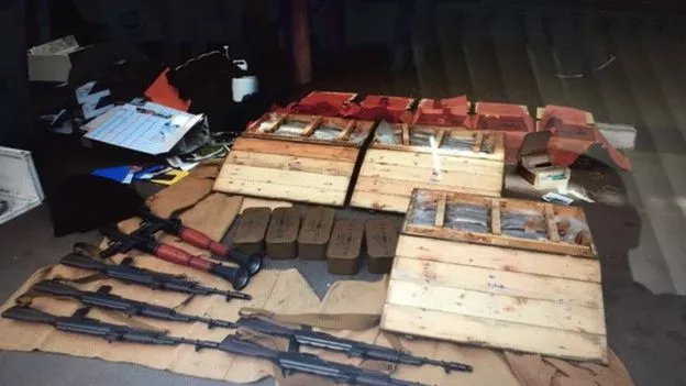 Йшлося про 5 автоматів Калашникова з набоями, два ручних протитанкових гранатомети “РПГ-7В”, 125 кг тротилу та 100 електродетонаторів.