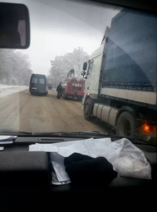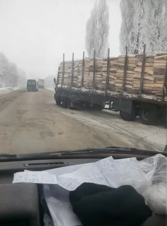 17-го січня вантажівка, завантажена дровами, через слизьку дорогу не змогла піднятися вгору. КамАЗ занесло, і він ледь не злетів з траси.