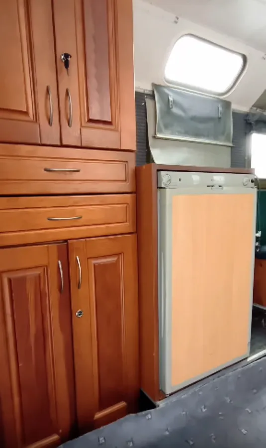 Всередині будиночку на колесах є шафки, холодильник, раковина, стіл та дивани навколо нього. За потреби стіл можна заховати і розкласти сидіння, перетворивши їх на велике комфортне ліжко.