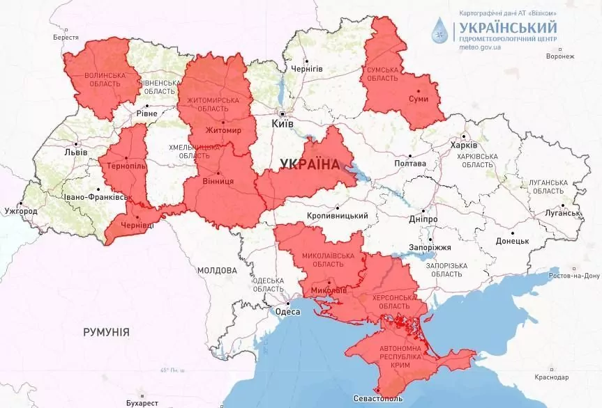 Зокрема, сьогодні надзвичайний рівень пожежної небезпеки буде у кількох областях України. Зокрема, на Волині, у Тернопільській, Чернівецькій, Черкаській, Сумській, Миколаївській областях.