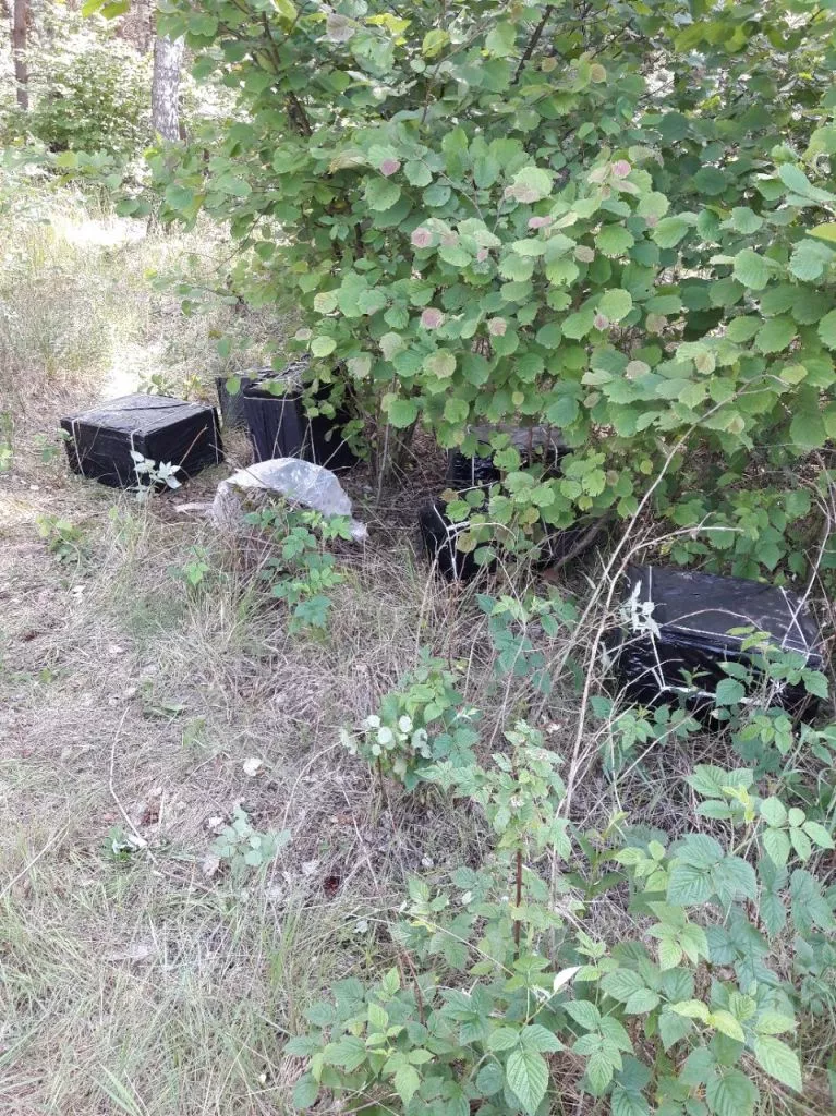 22-го червня на Волині правоохоронці встановили місце накопичення ящиків з сигаретами в лісосмузі, неподалік прикордонних інженерних загороджень.