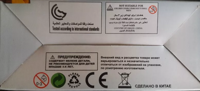 Так, зокрема, на прикріпленій до неї етикетці, пакуванні відсутній знак відповідності технічним регламентам. Крім того, виробником та імпортером не зазначене власне найменування та адреса, зареєстрована торговельна марка (знак для товарів і послуг), відсутня інформація про безпечність, яка складається згідно з вимогами законодавства про мови.