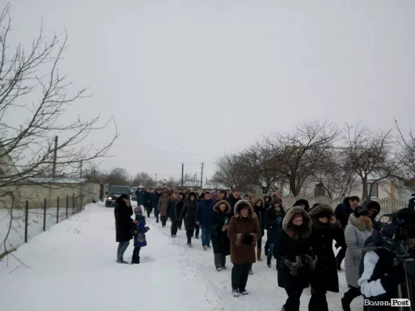 Тіло Героя доправили на Волинь 13 січня. У селі його зустрічали люди, які попри негоду стояли на колінах.